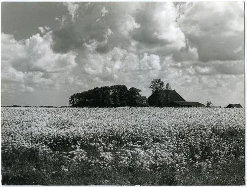 Foto in zwart-wit van een koolzaadveld bij Dronrijp ...