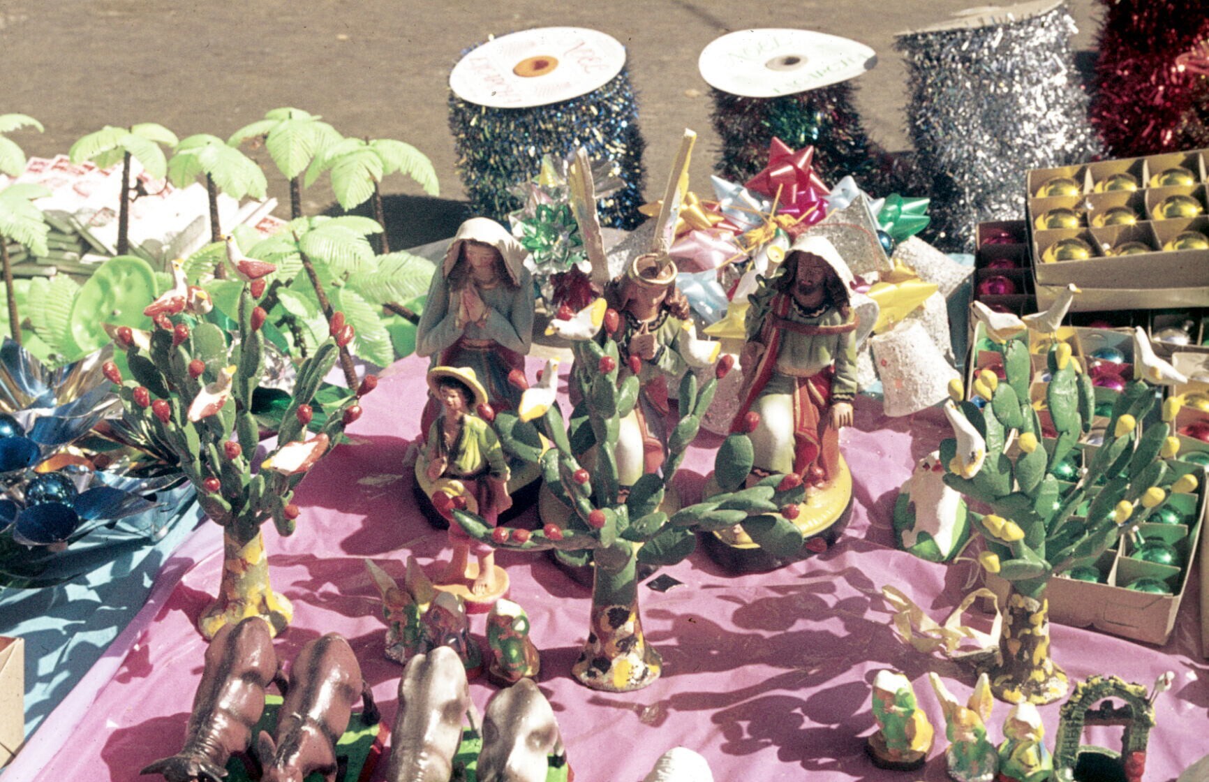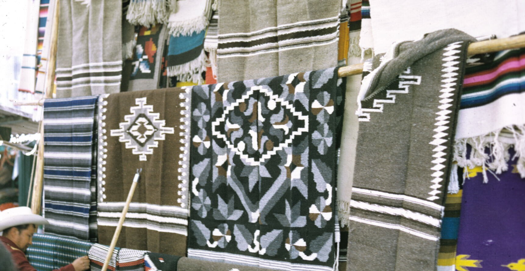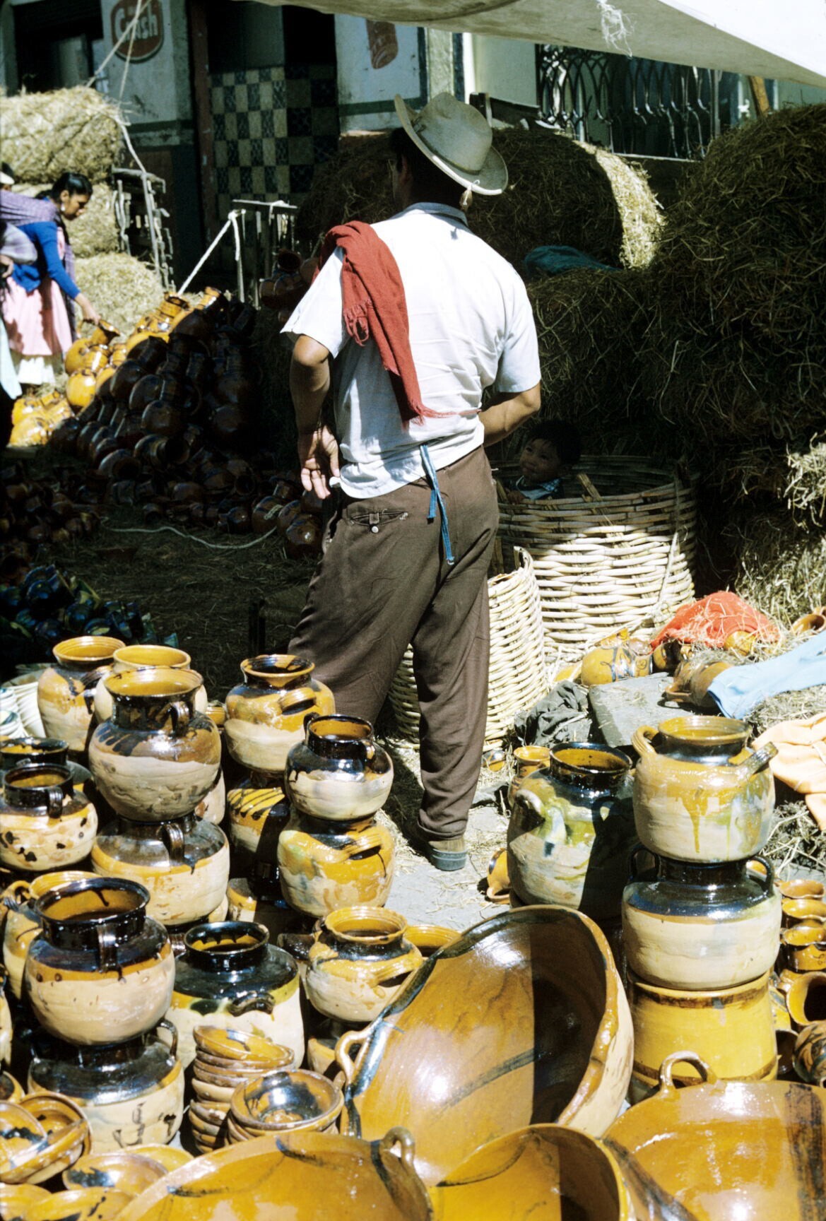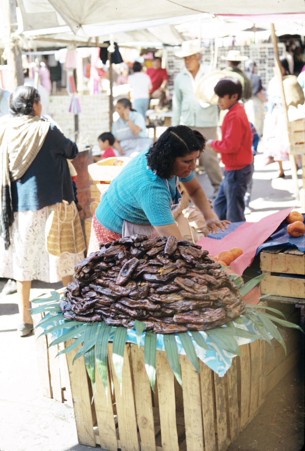 Trique vrouwen op markt, een van hen faja (ceintuur)...