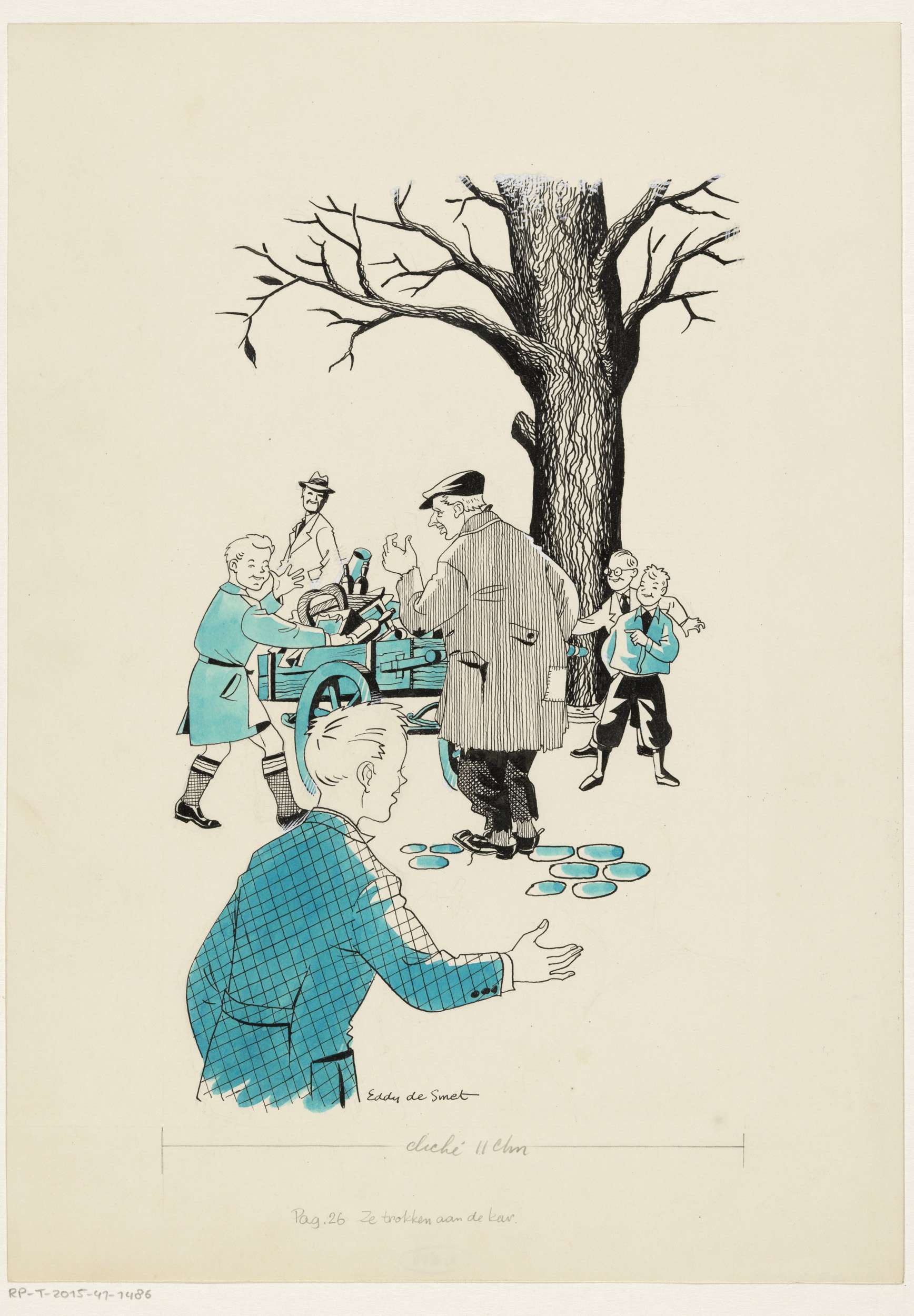 Jongens trekken aan een handkar