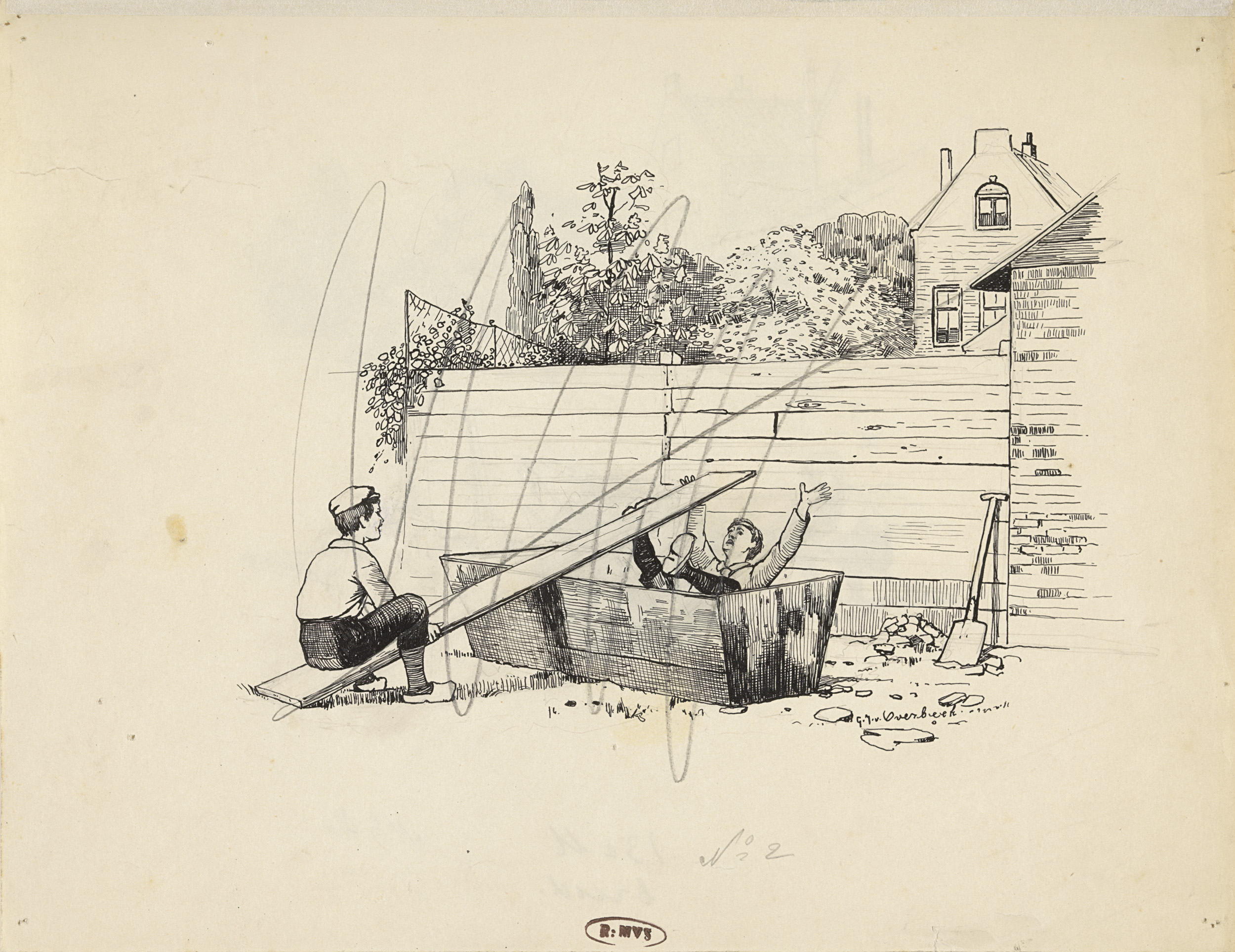 Jongen met emmers bij Huize Zeemansrust