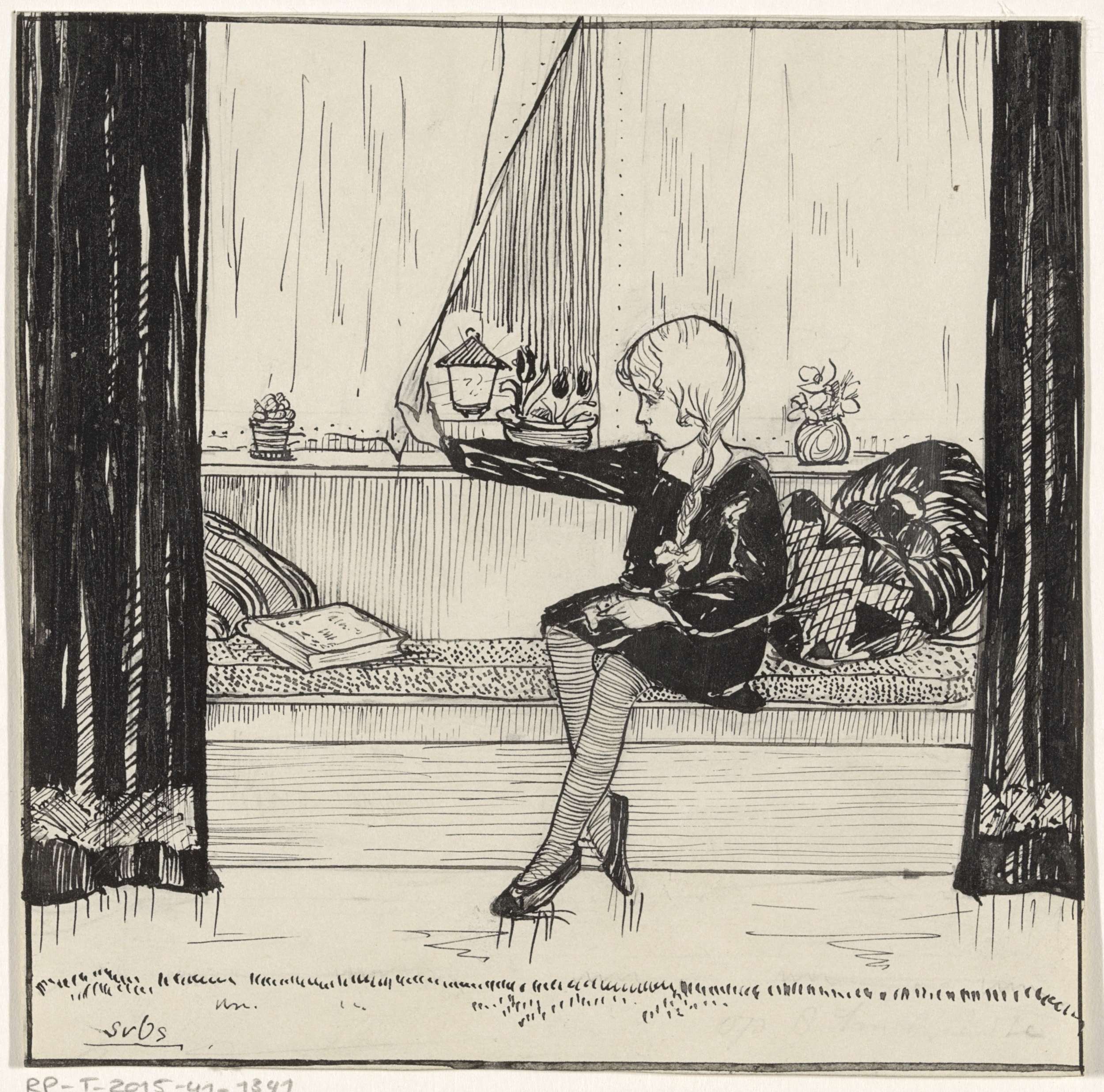 Zittend meisje in een vensterbank