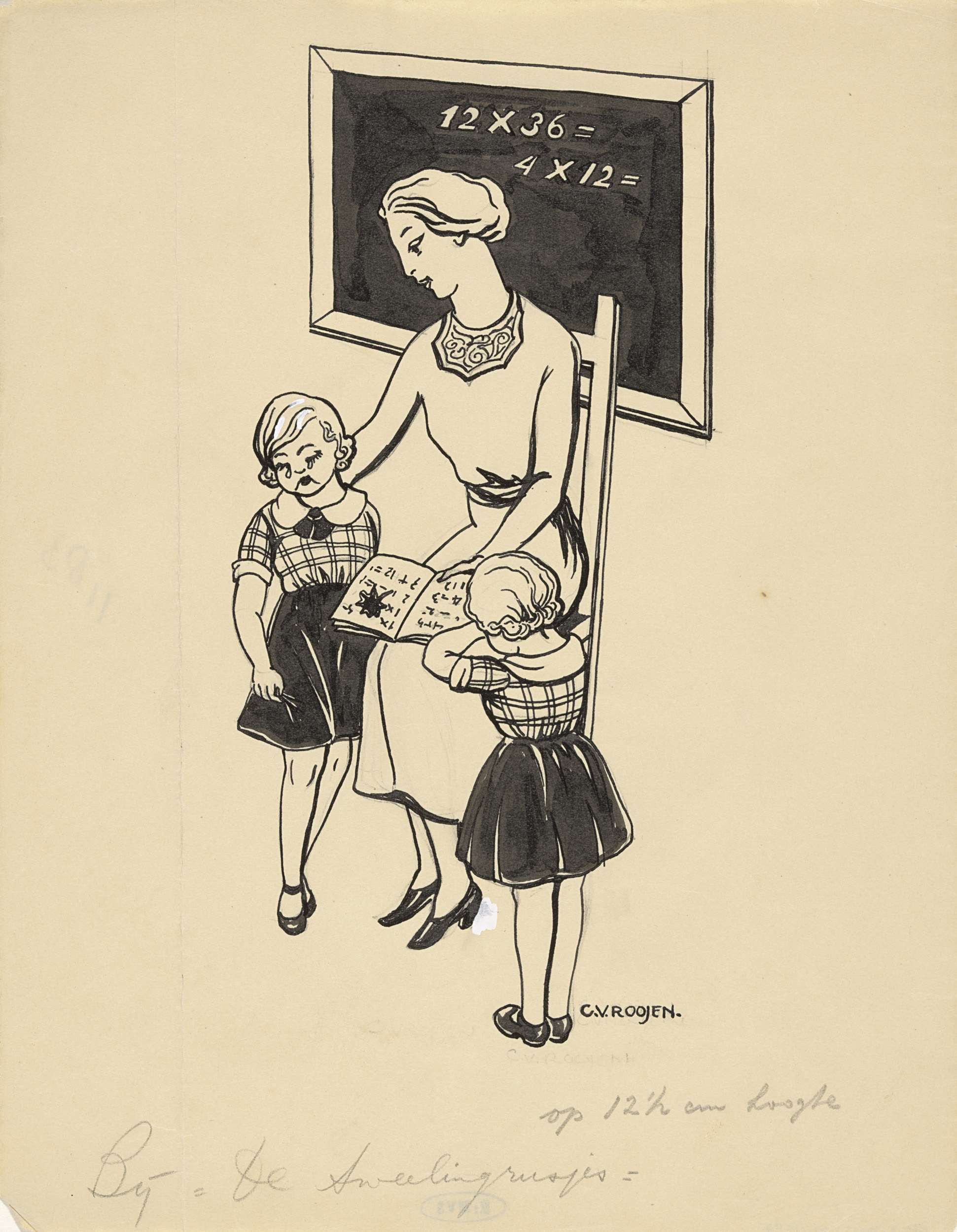 Tweelingzussen bij de juf