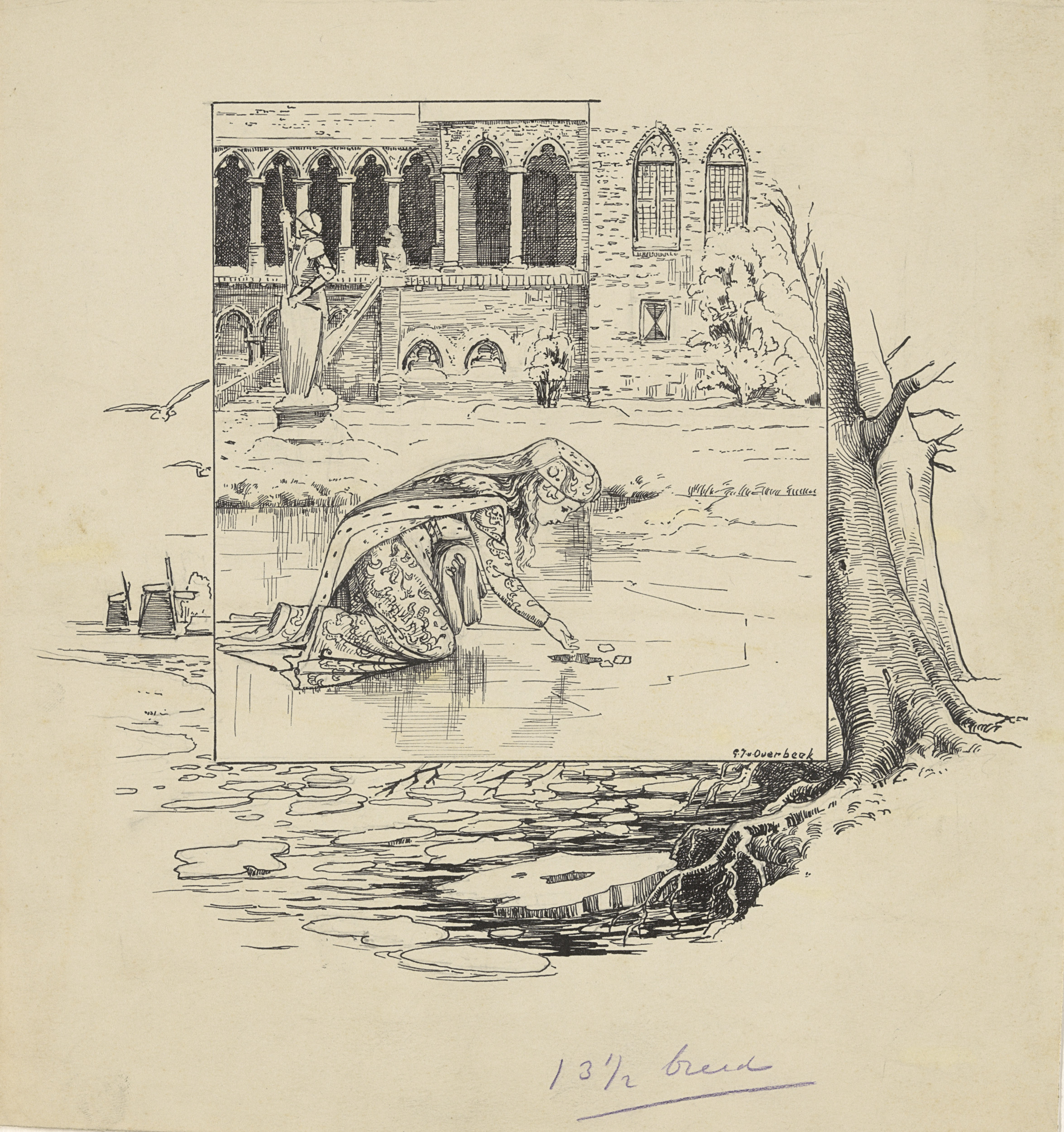 Meisje strooit kruimels in een wak