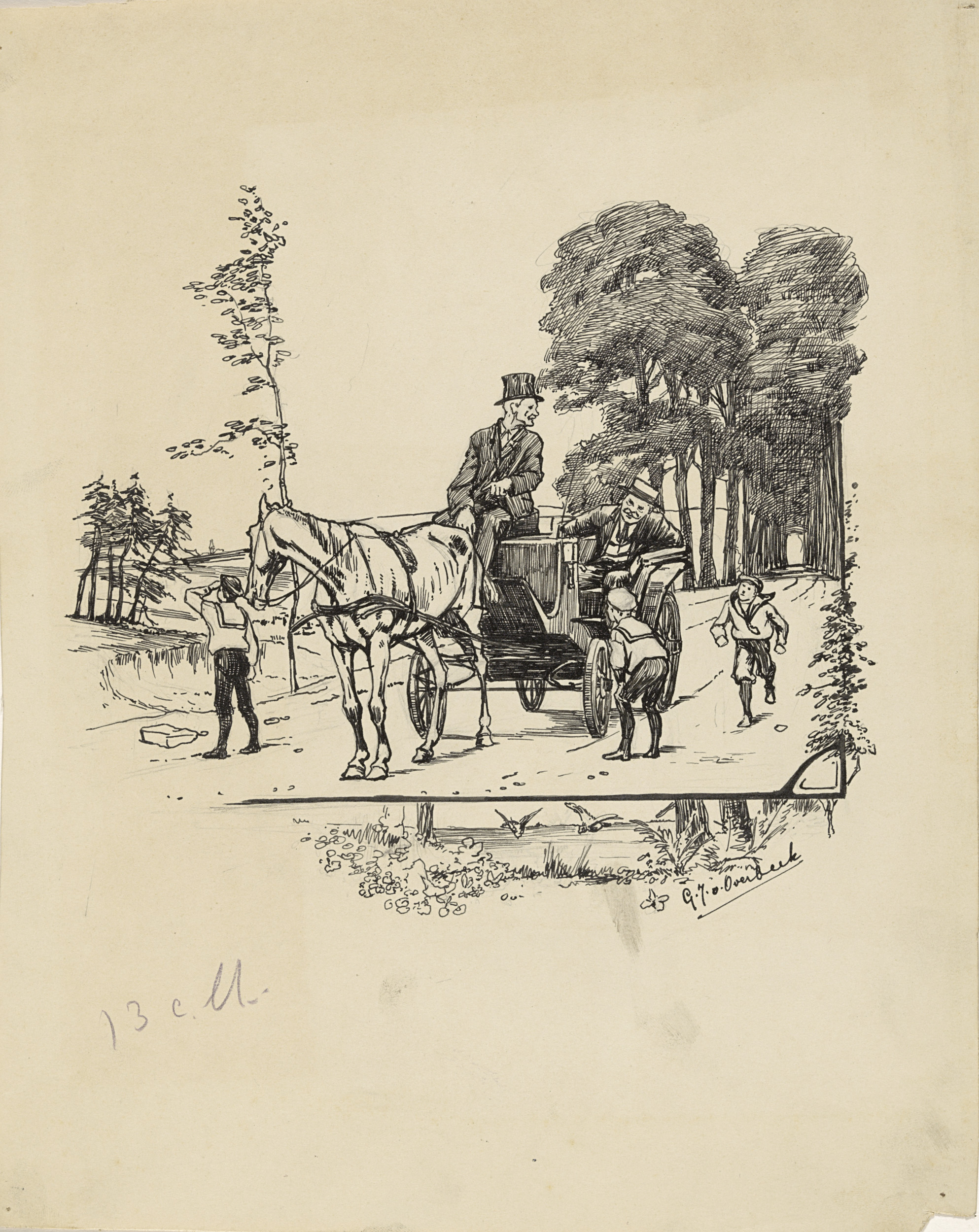 Drie jongens houden een koets aan