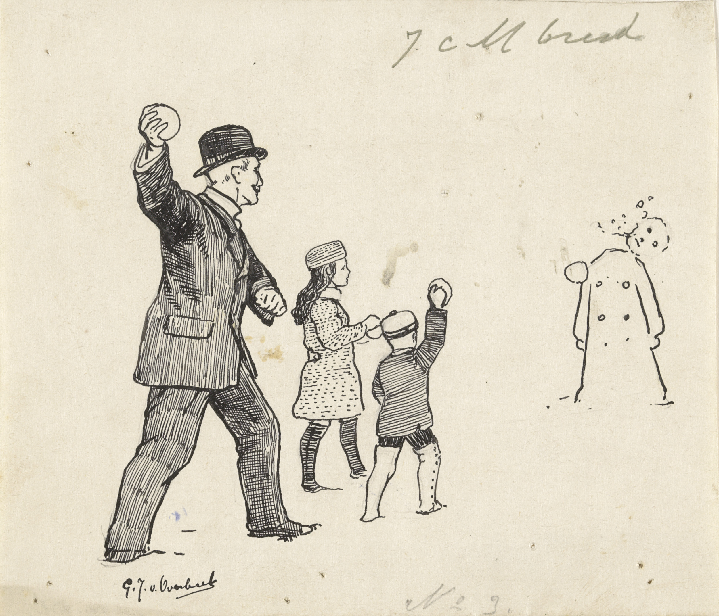 Man en kinderen gooien sneeuwballen