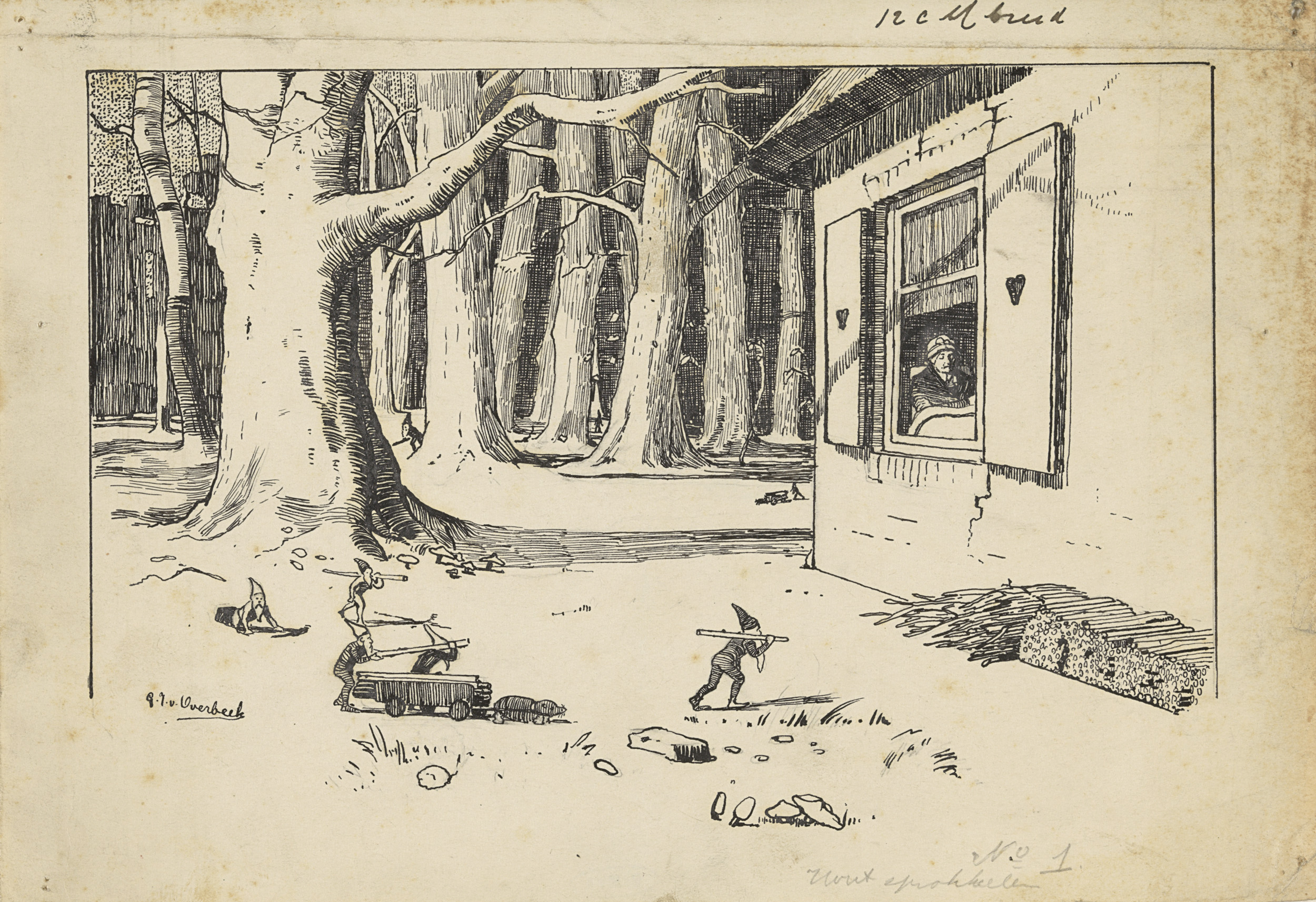 Werkende kabouters bij een bos