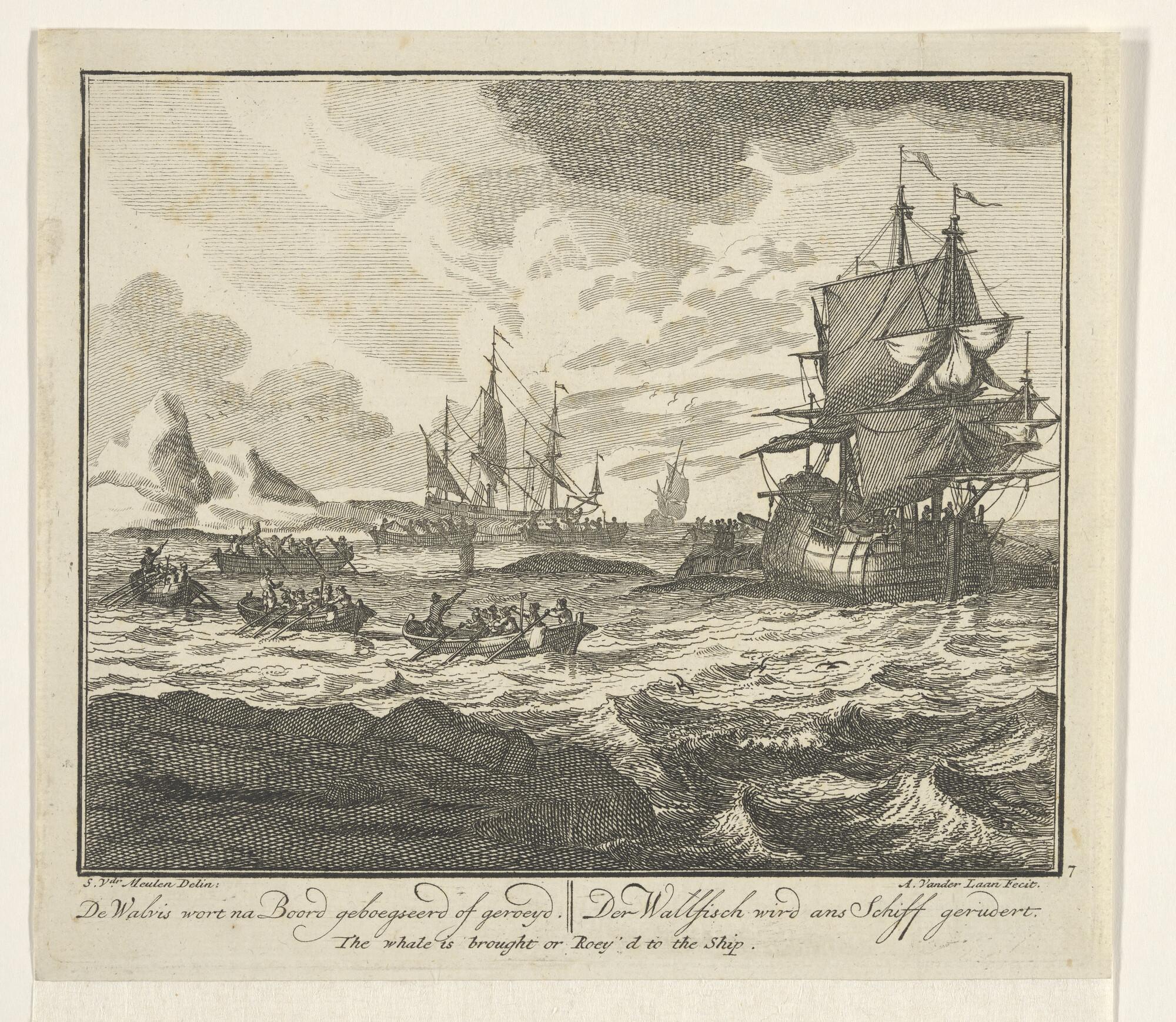 prent van een scène over de walvisvangst