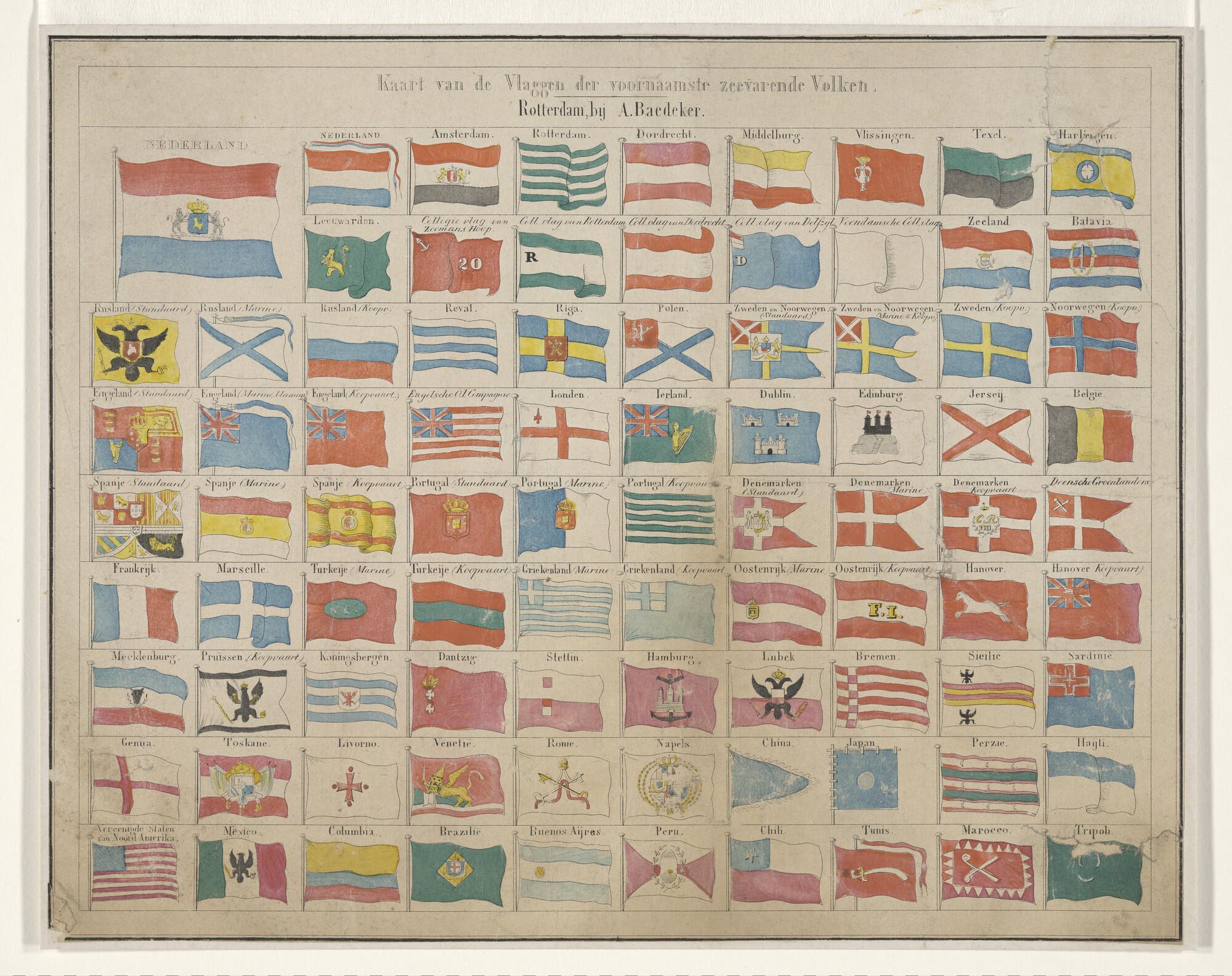 Vlaggenkaart met ingekleurde vlaggen van zeevarende ...
