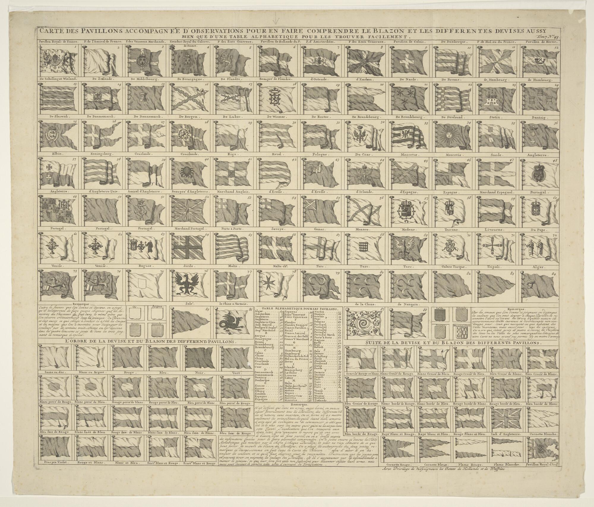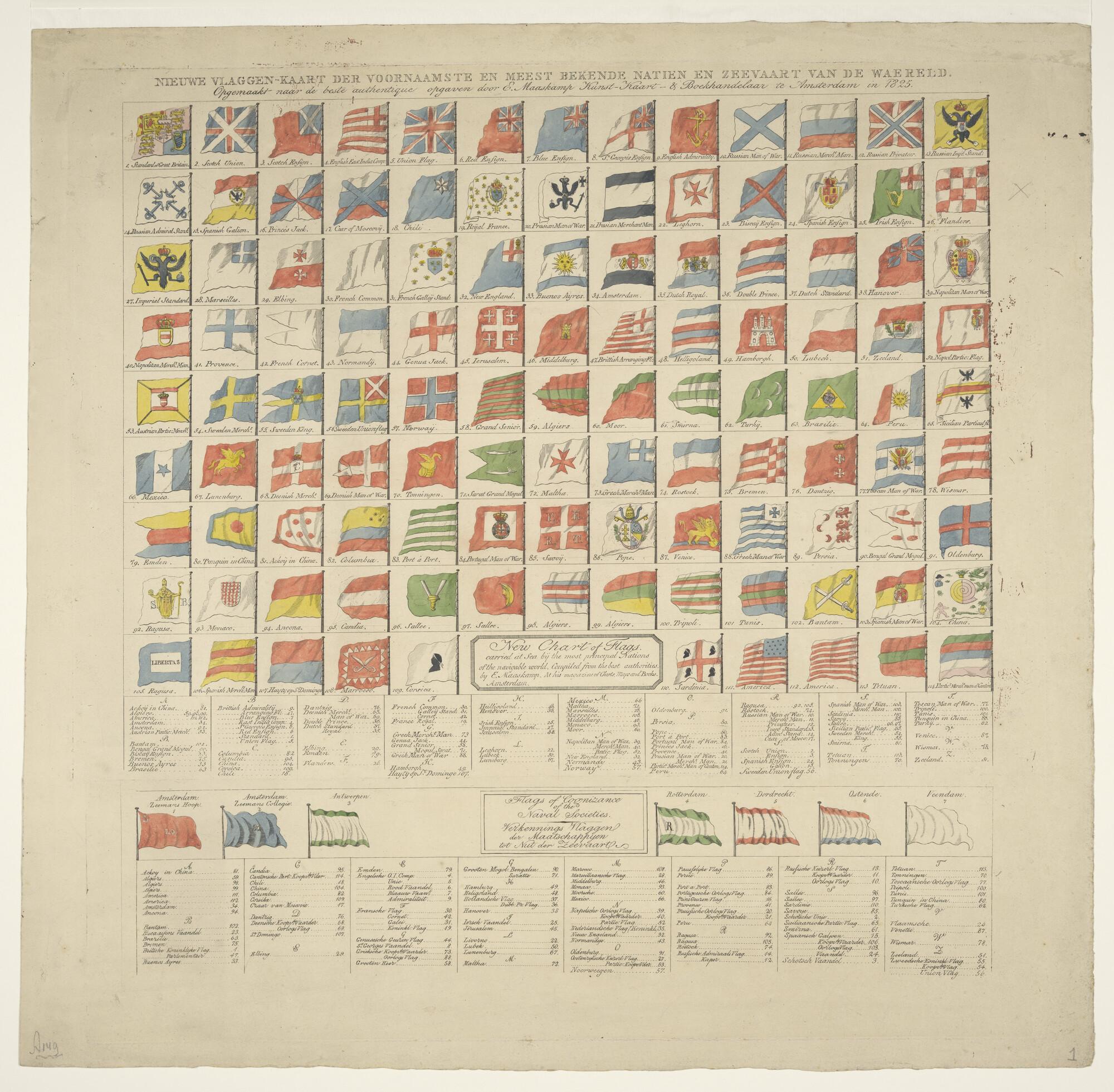 Vlaggenkaart met 139 genummerde vlaggen van zeevaren...