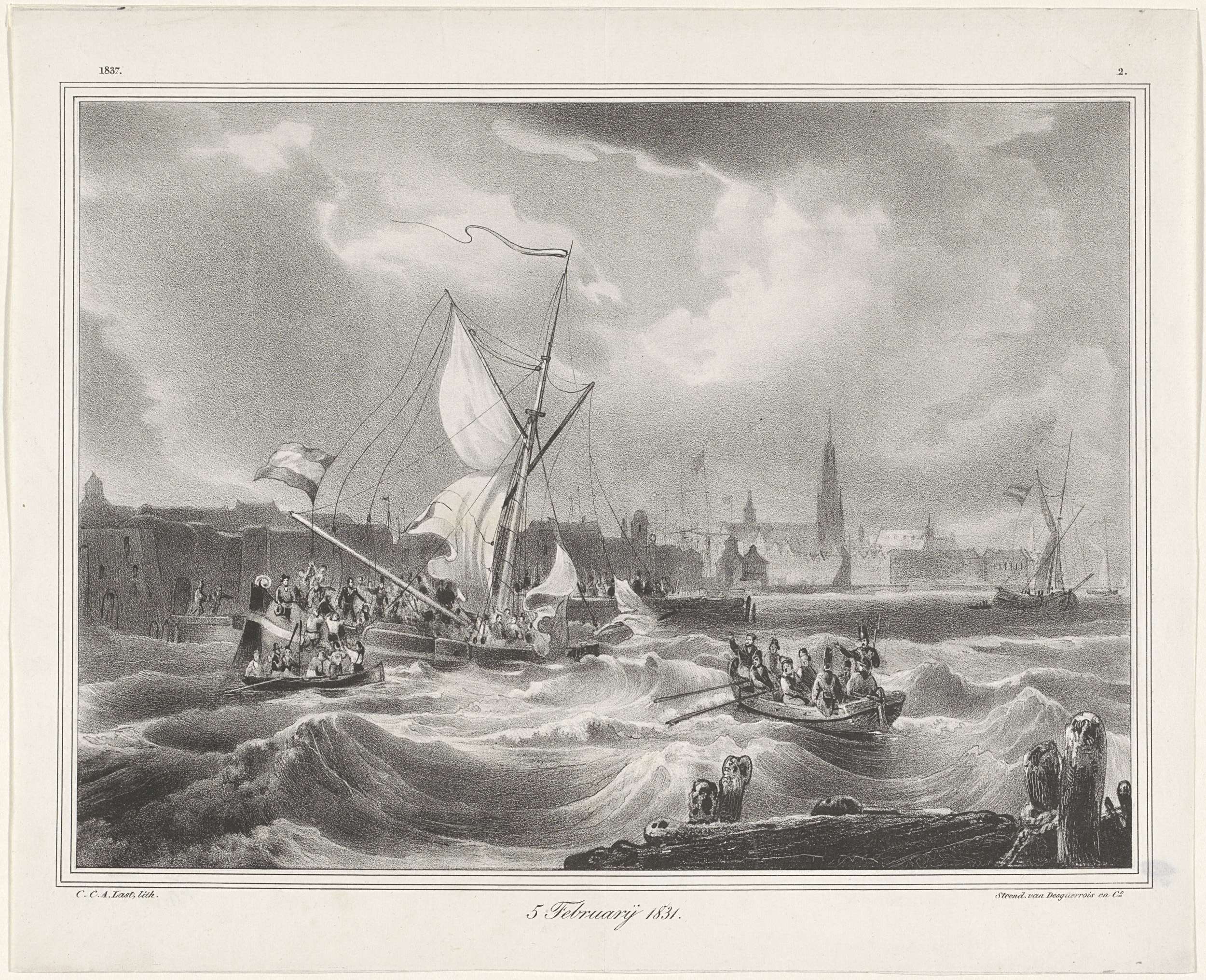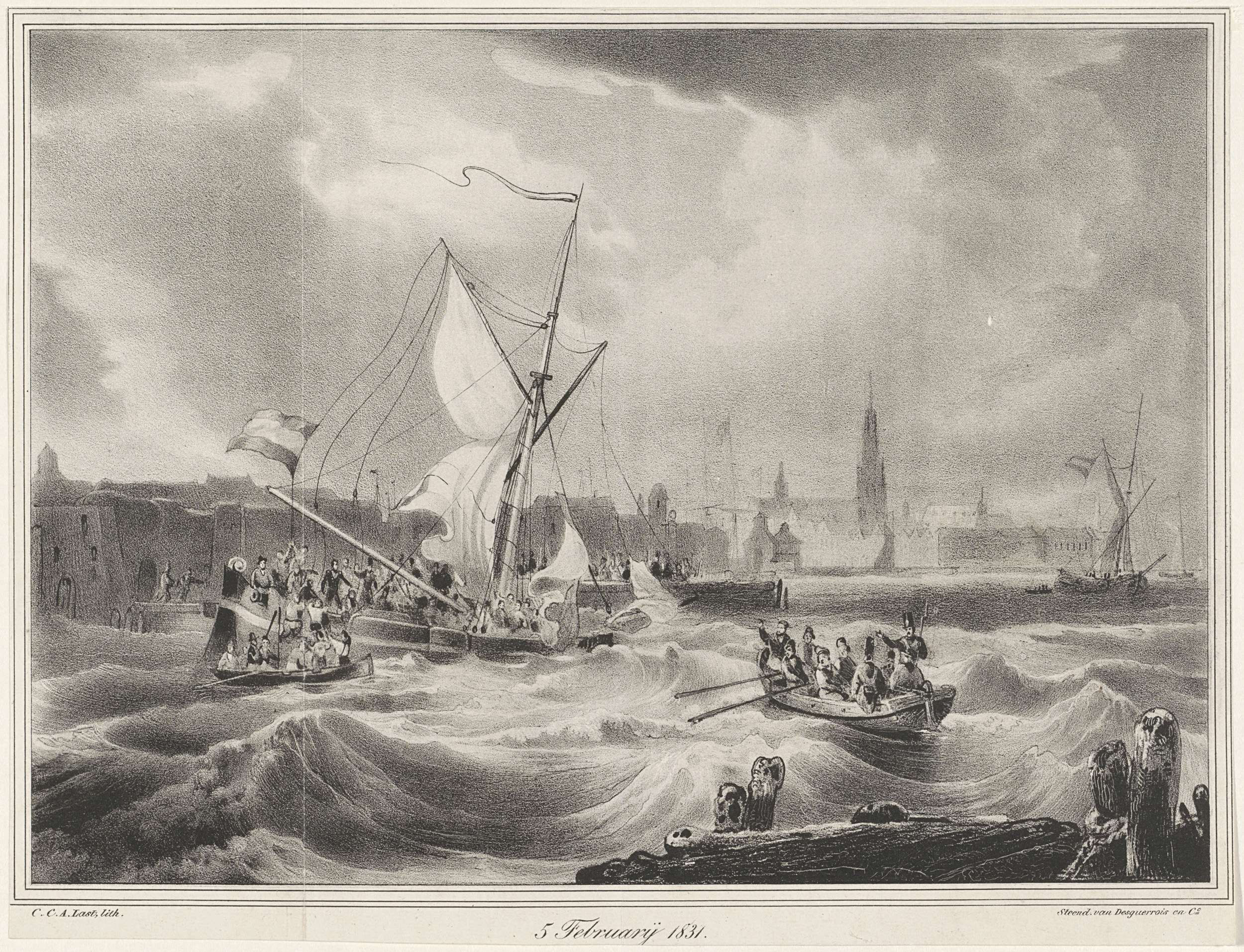 Vertrek van vrijwillige Amsterdamse schutterij, 1830