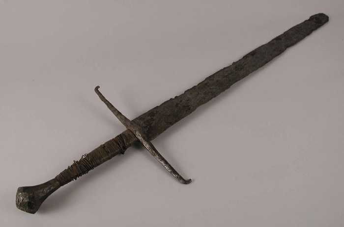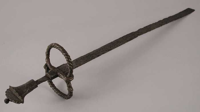 Kort tweehandszwaard met messing omvlechting van het...