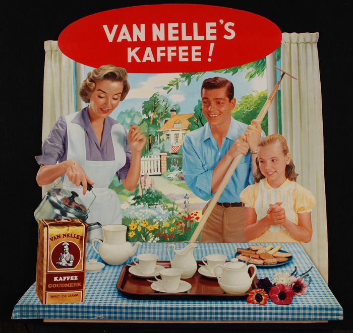 Duits reclamebord "Van Nelle's KAFFEE!" moeder zet k...