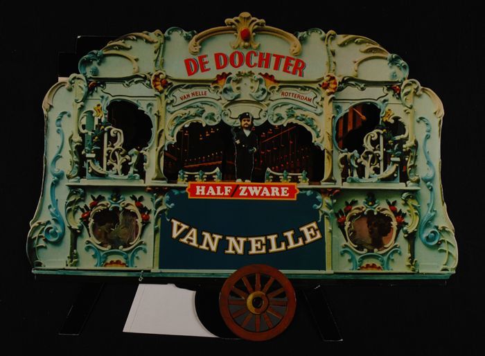 Twee reclameborden Van Nelle in de vorm van een draa...