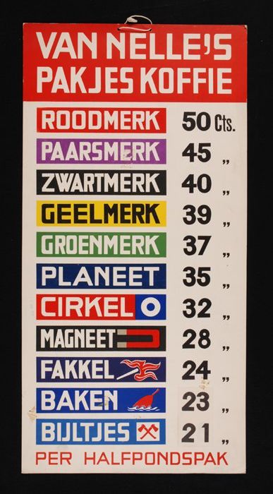 Prijslijst Van Nelle's "PAKJES KOFFIE" met onder mee...