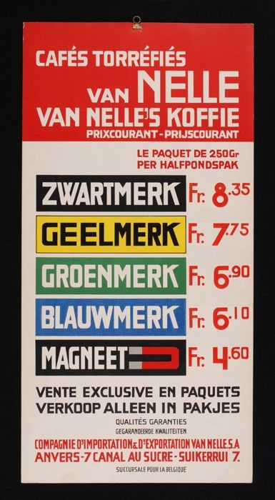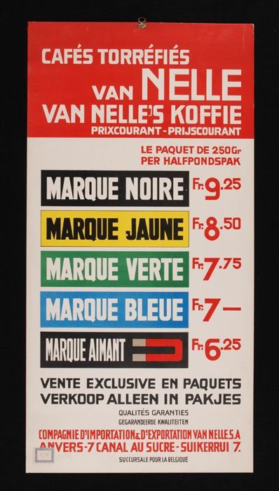 Belgische prijslijst Van Nelle's koffie, tweetalig m...