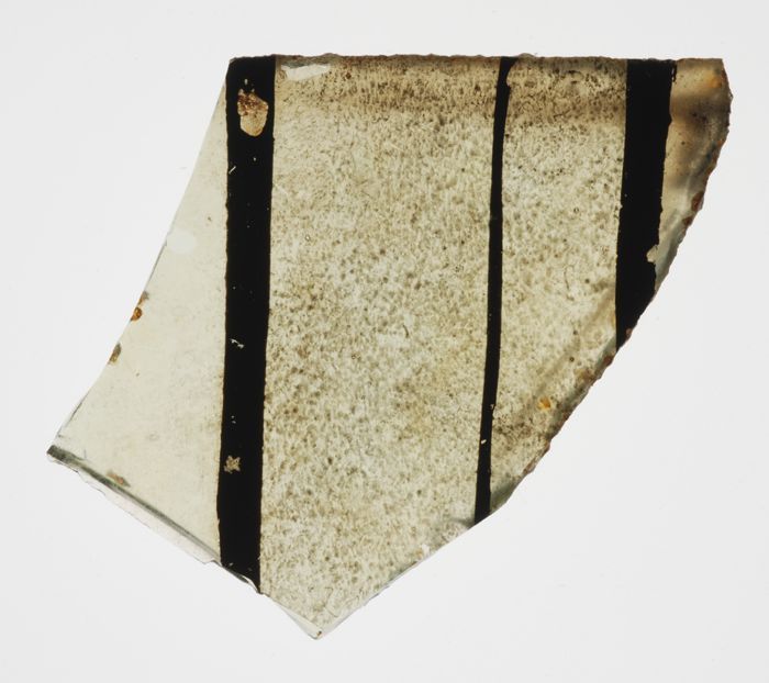 Fragment van groenig vensterglas met gebrandschilder...