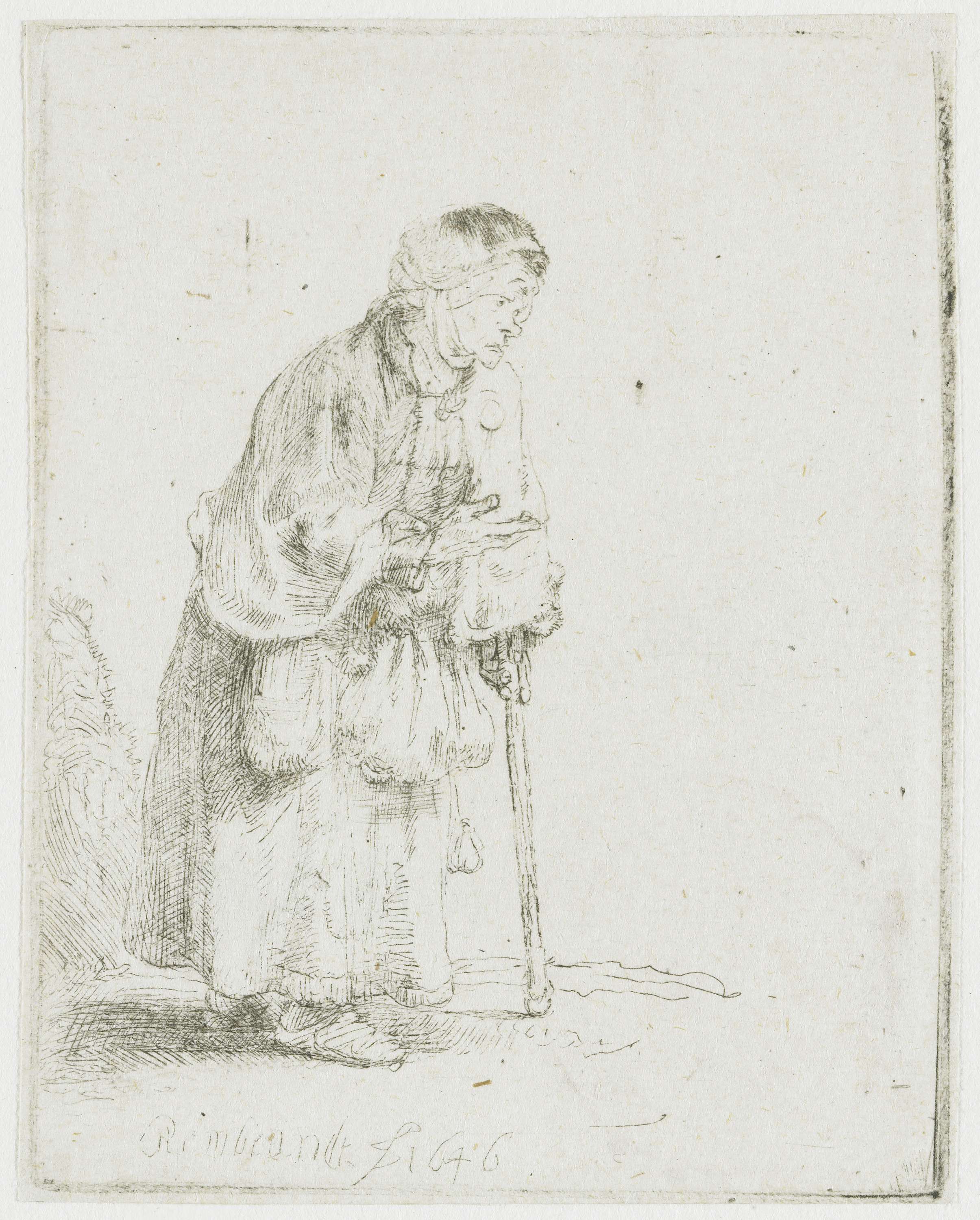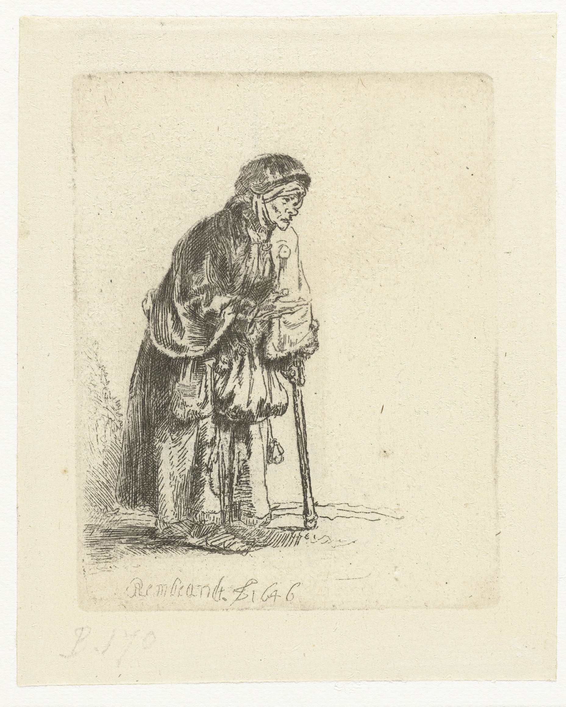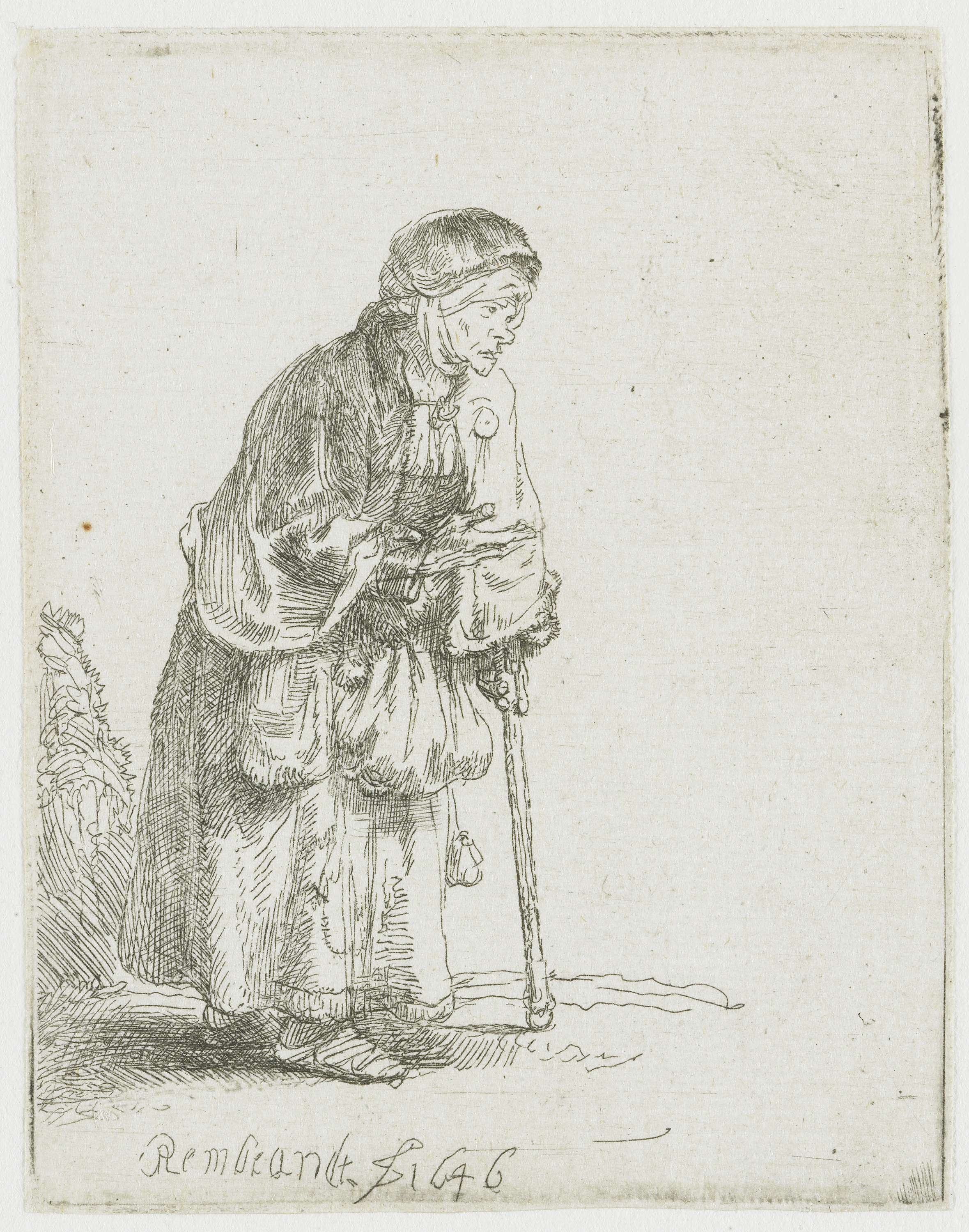 Beggar woman leaning on a stick