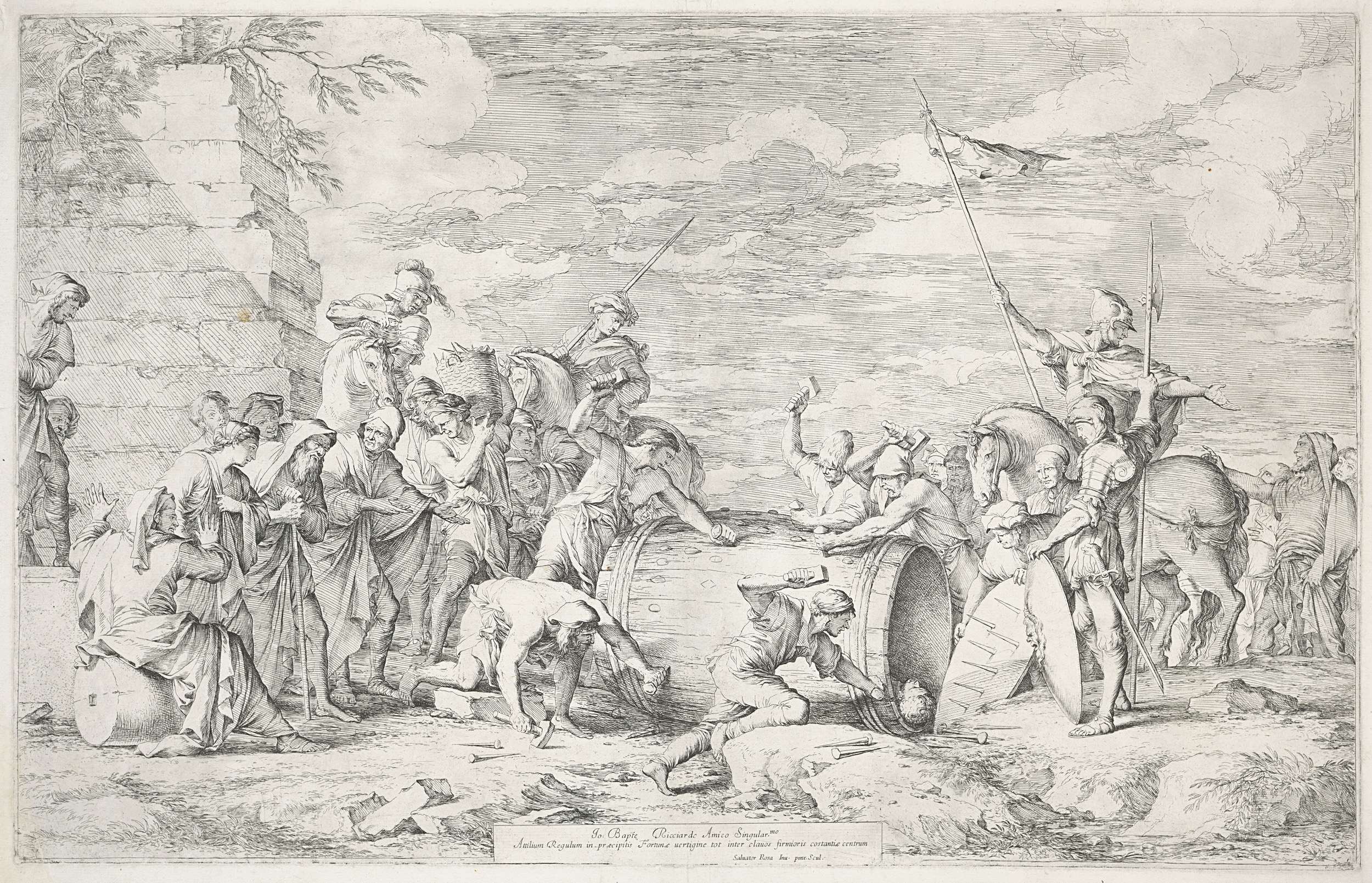Marteldood van Marcus Atilius Regulus in ton met spi...