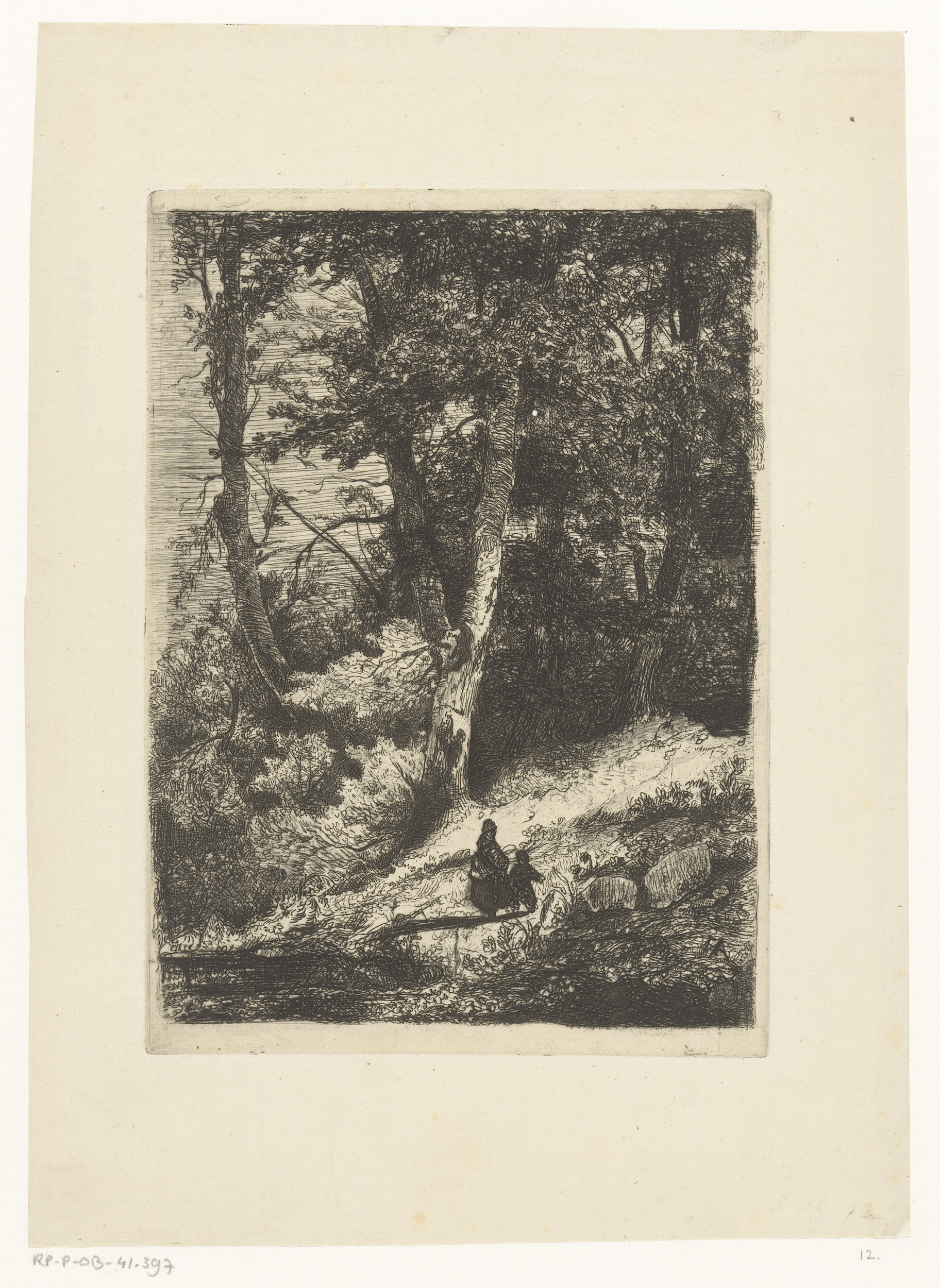 Twee figuren op een bospad