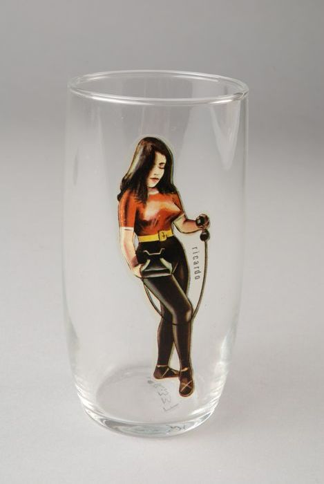 Glas, buitenzijde met afbeelding staande vrouw met t...