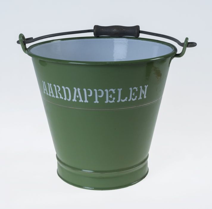 Groene geëmailleerde aardappelemmer met hengsel en w...