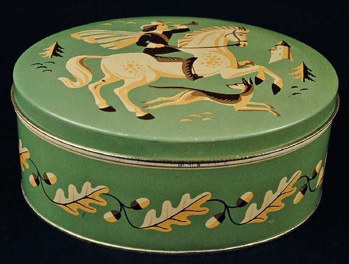 Rechthoekig blik met los deksel, "Verkade", veelkleurig