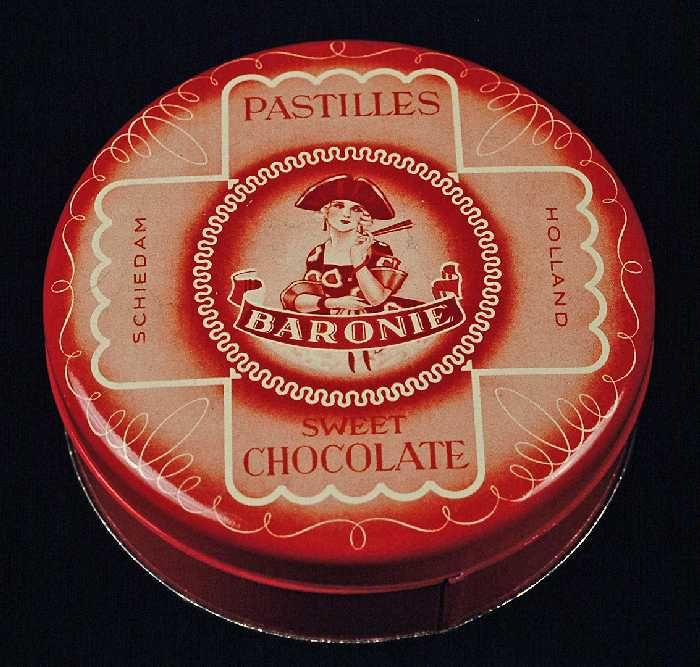 Rond blik met los deksel, "Baronie, pastilles", rood...