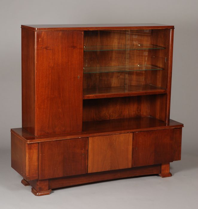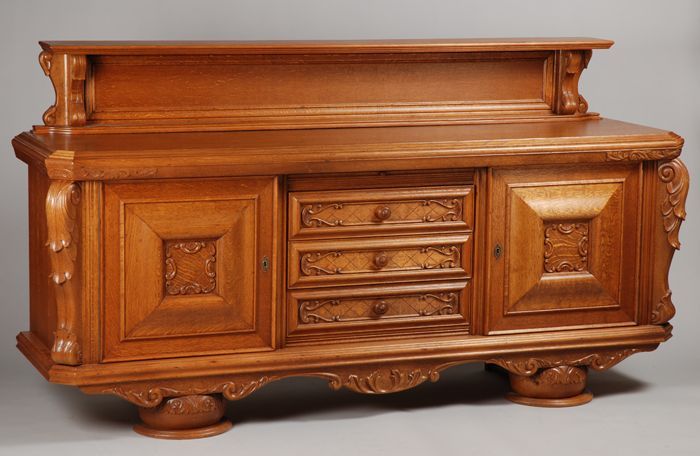 Uit de woonkamer van Tante Nel: houten dressoir, lic...