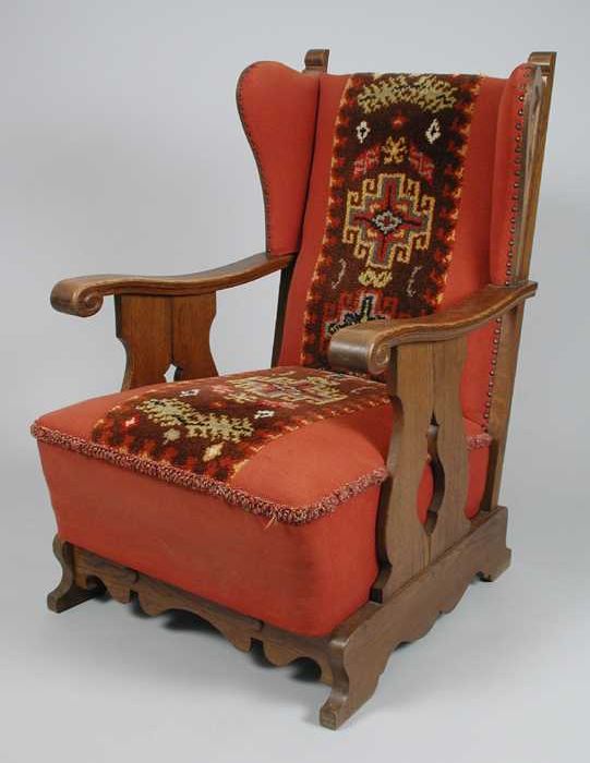 Uit de woonkamer van Tante Nel: eikenhouten armstoel...