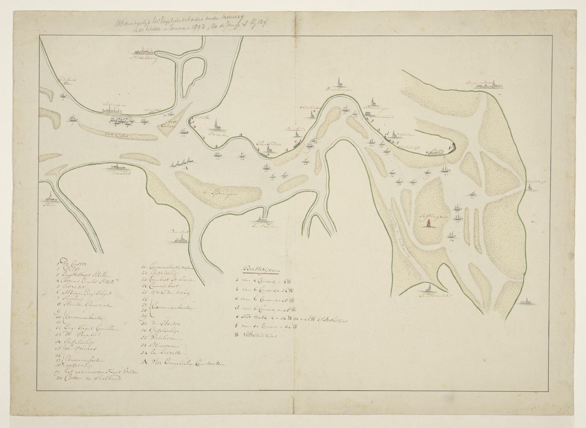 Voorstelling van de ligging van de vloten bij de lan...