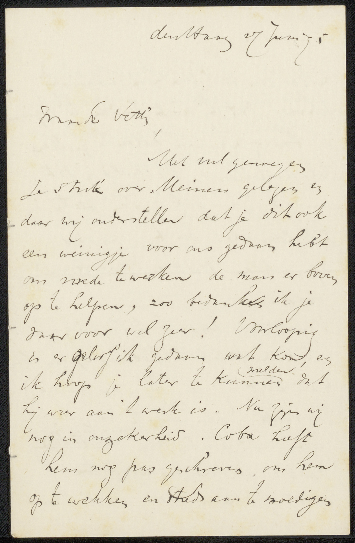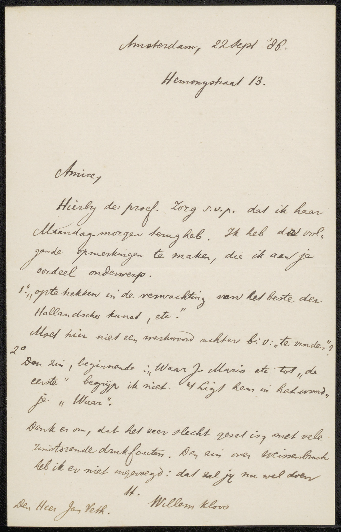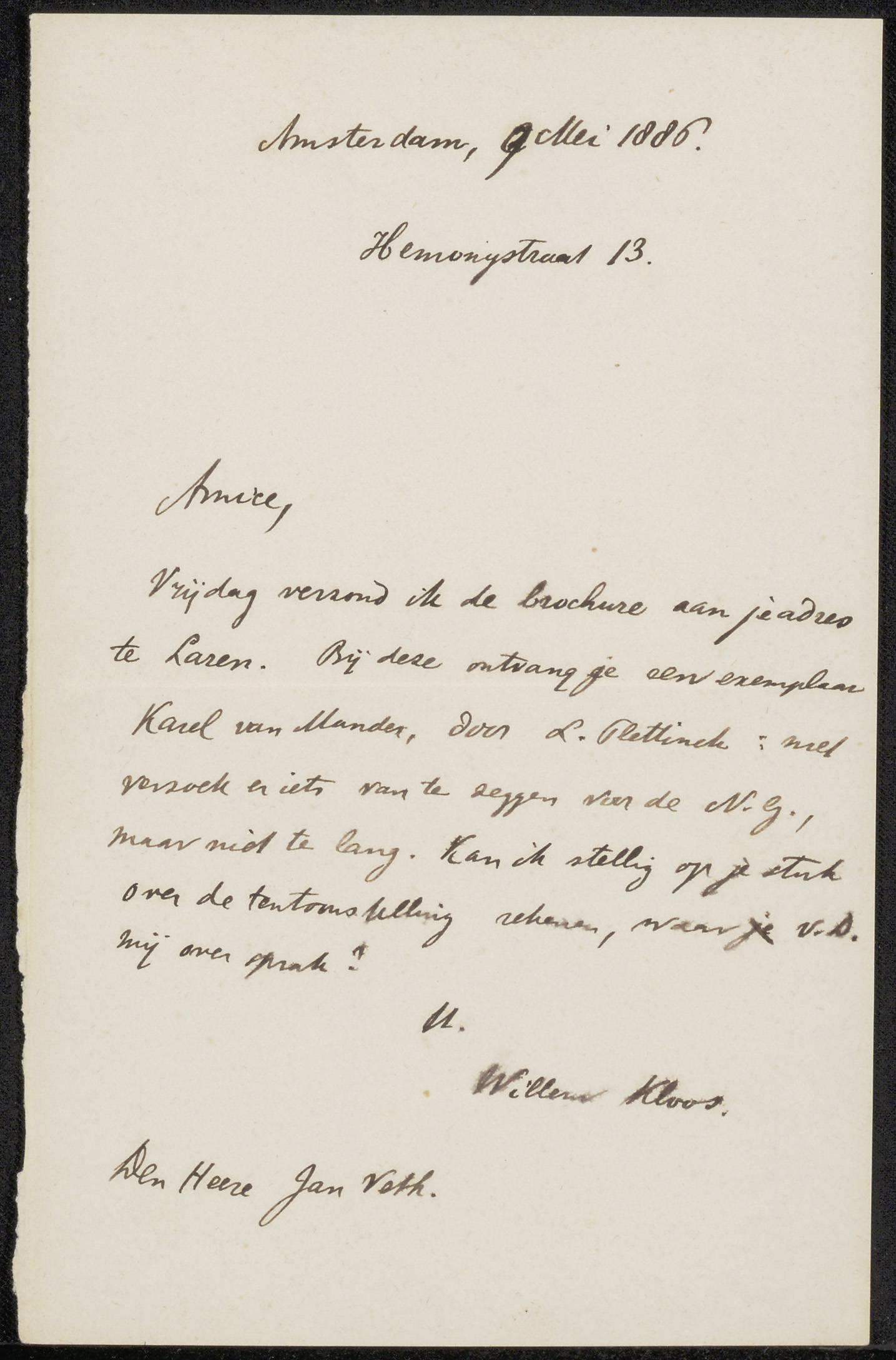 Brief aan Jan Veth