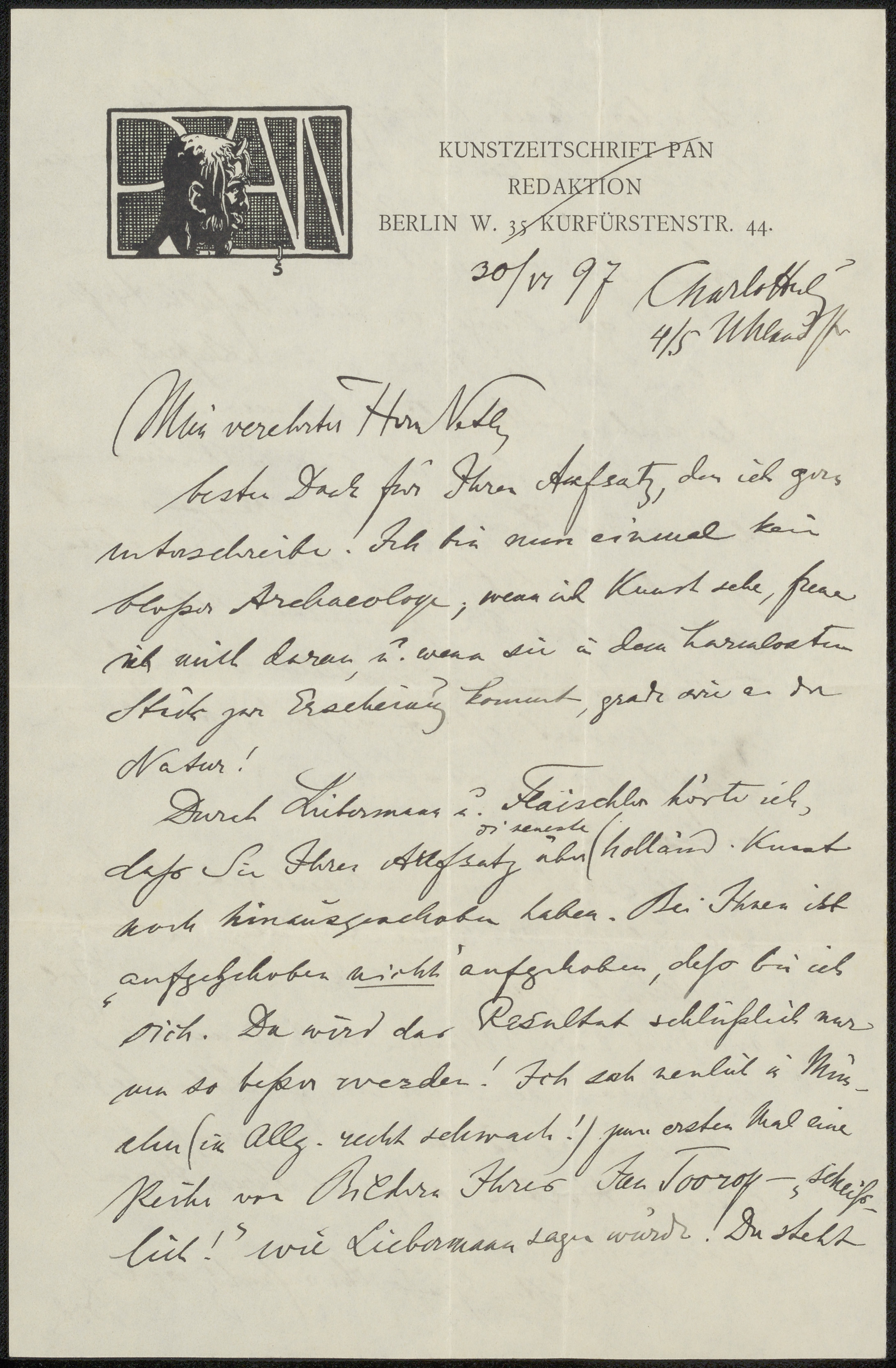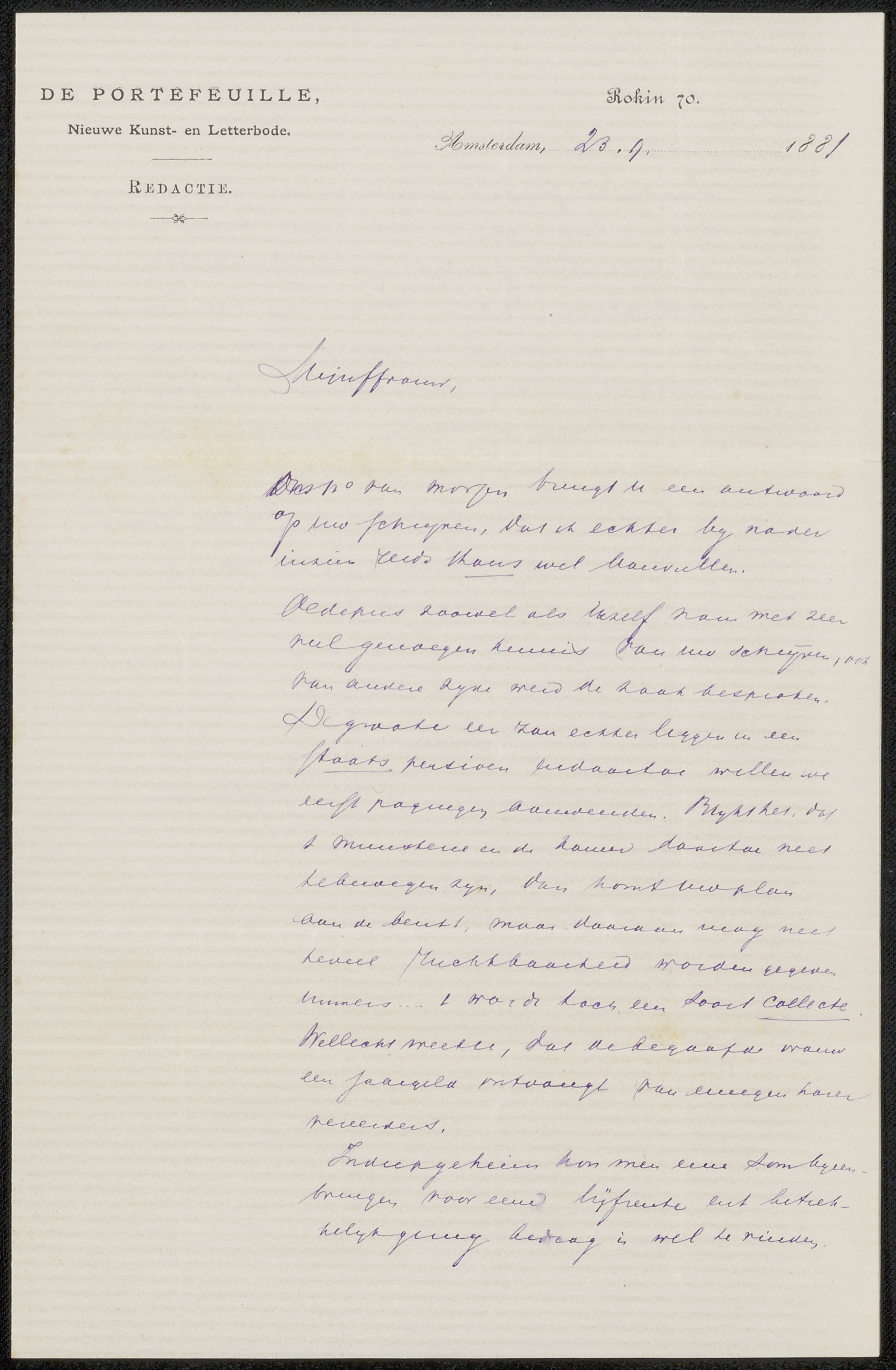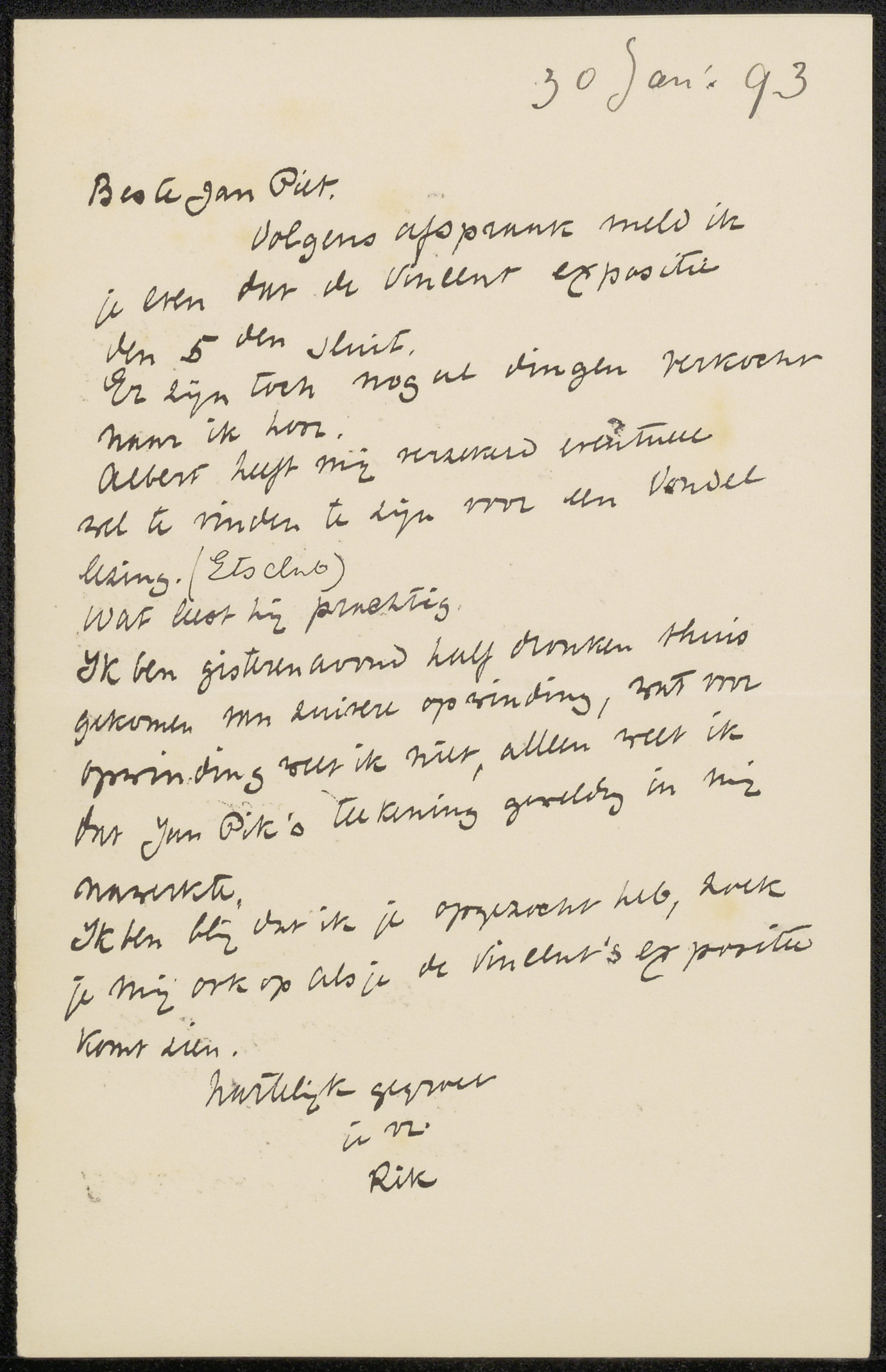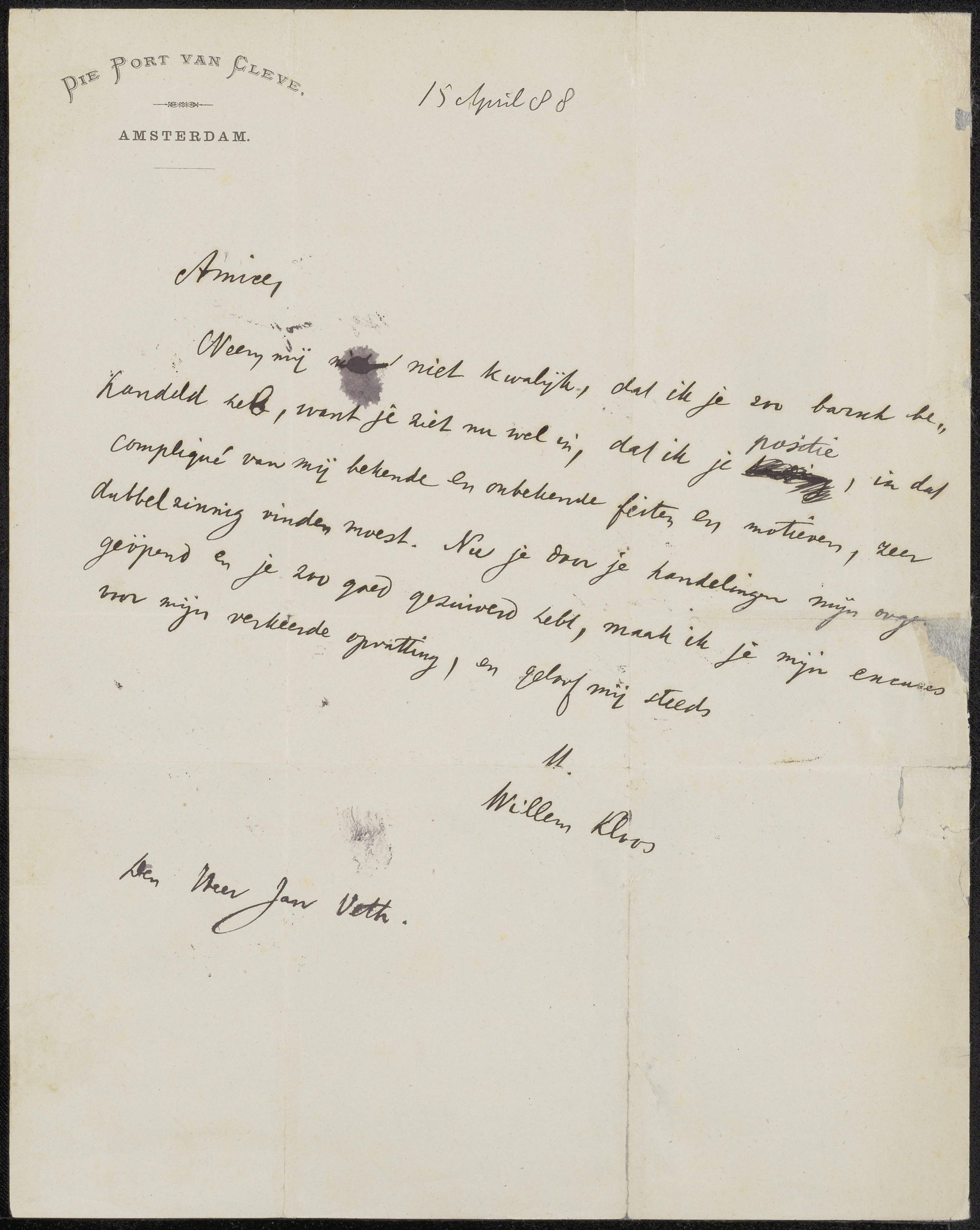 Brief aan Jan Veth