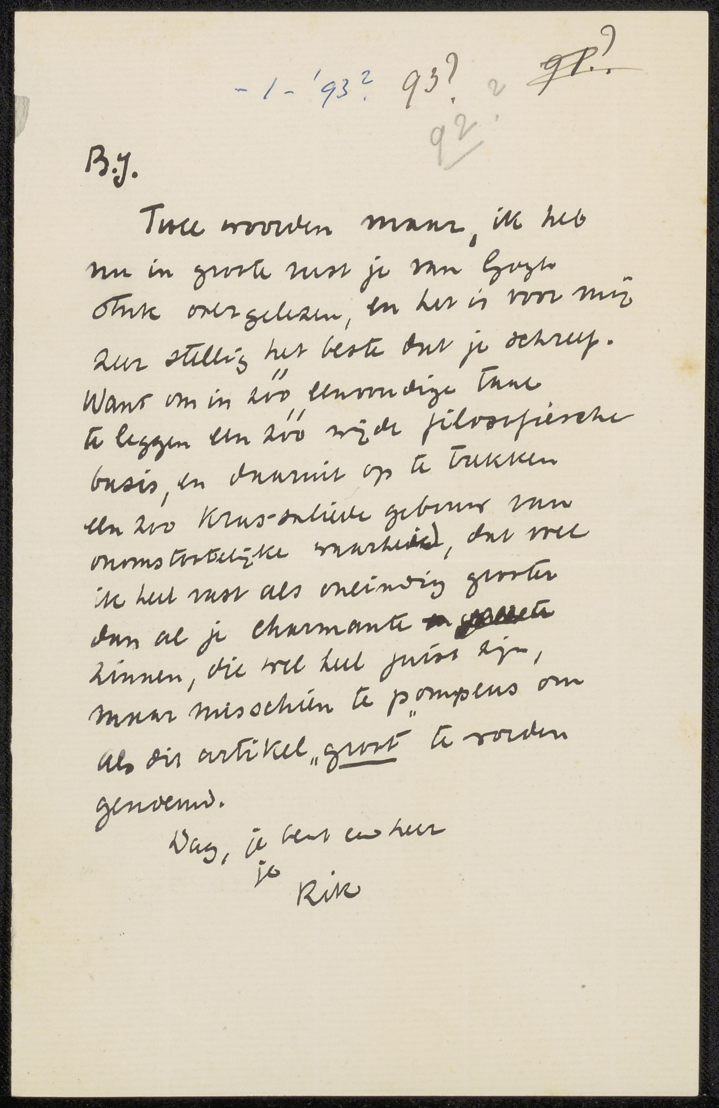 Brief aan Richard Roland Holst