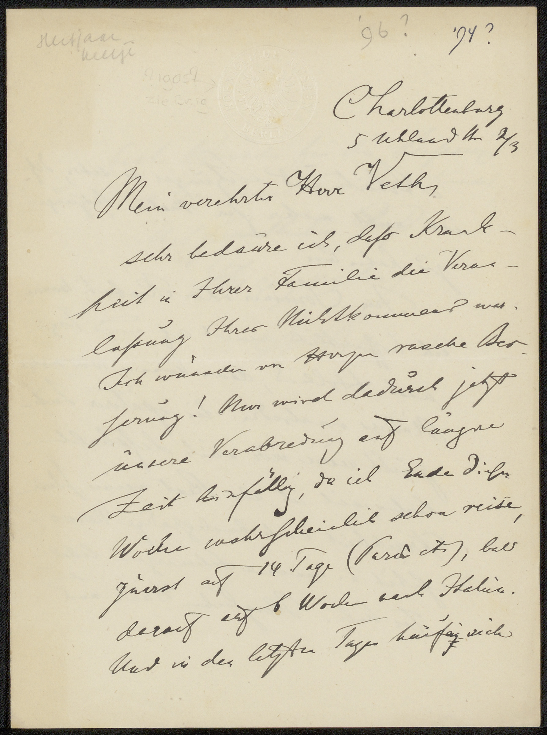 Brief aan Jan Veth en Anna Dorothea Dirks