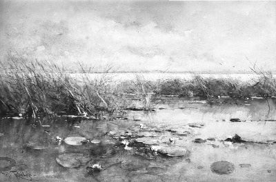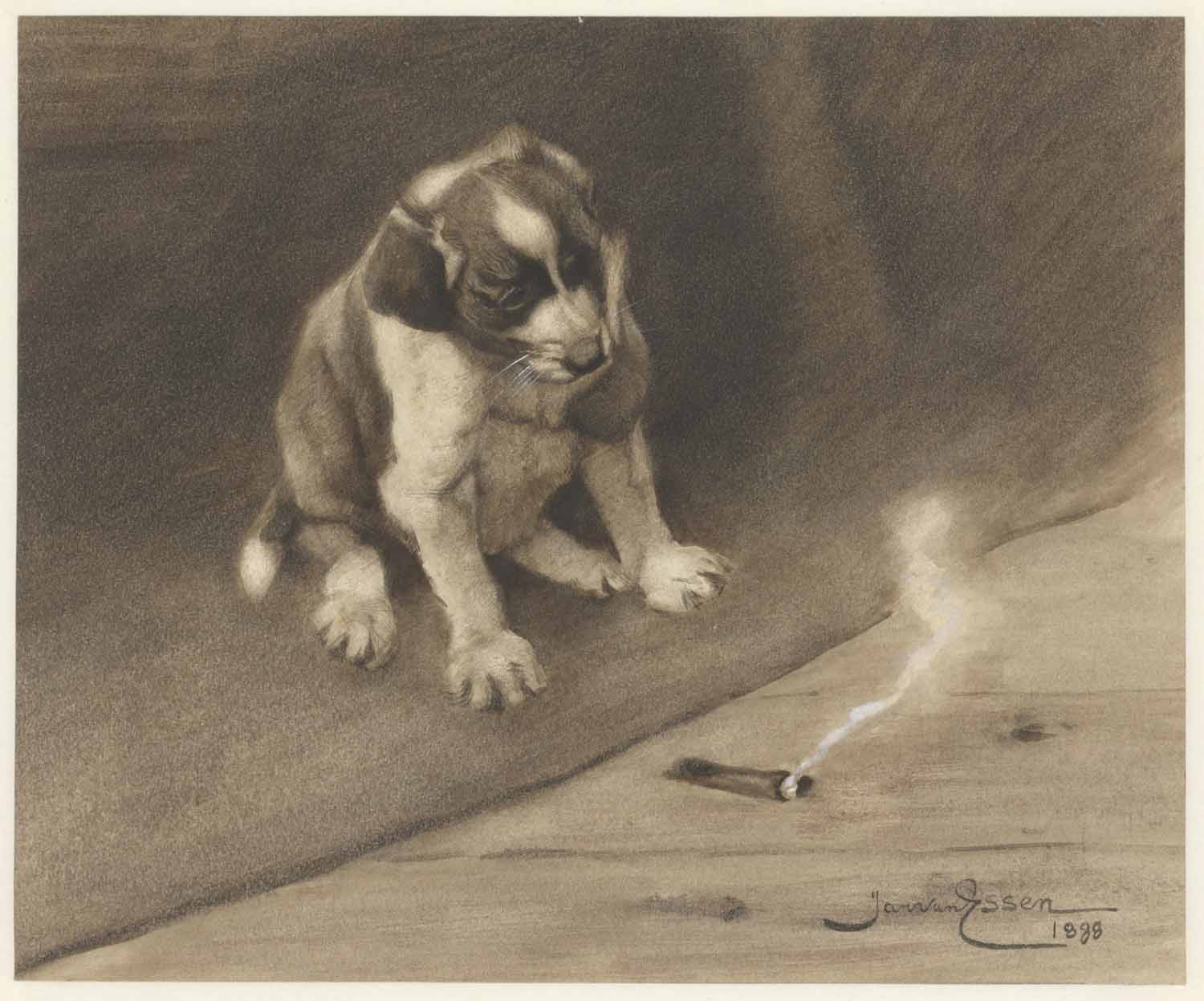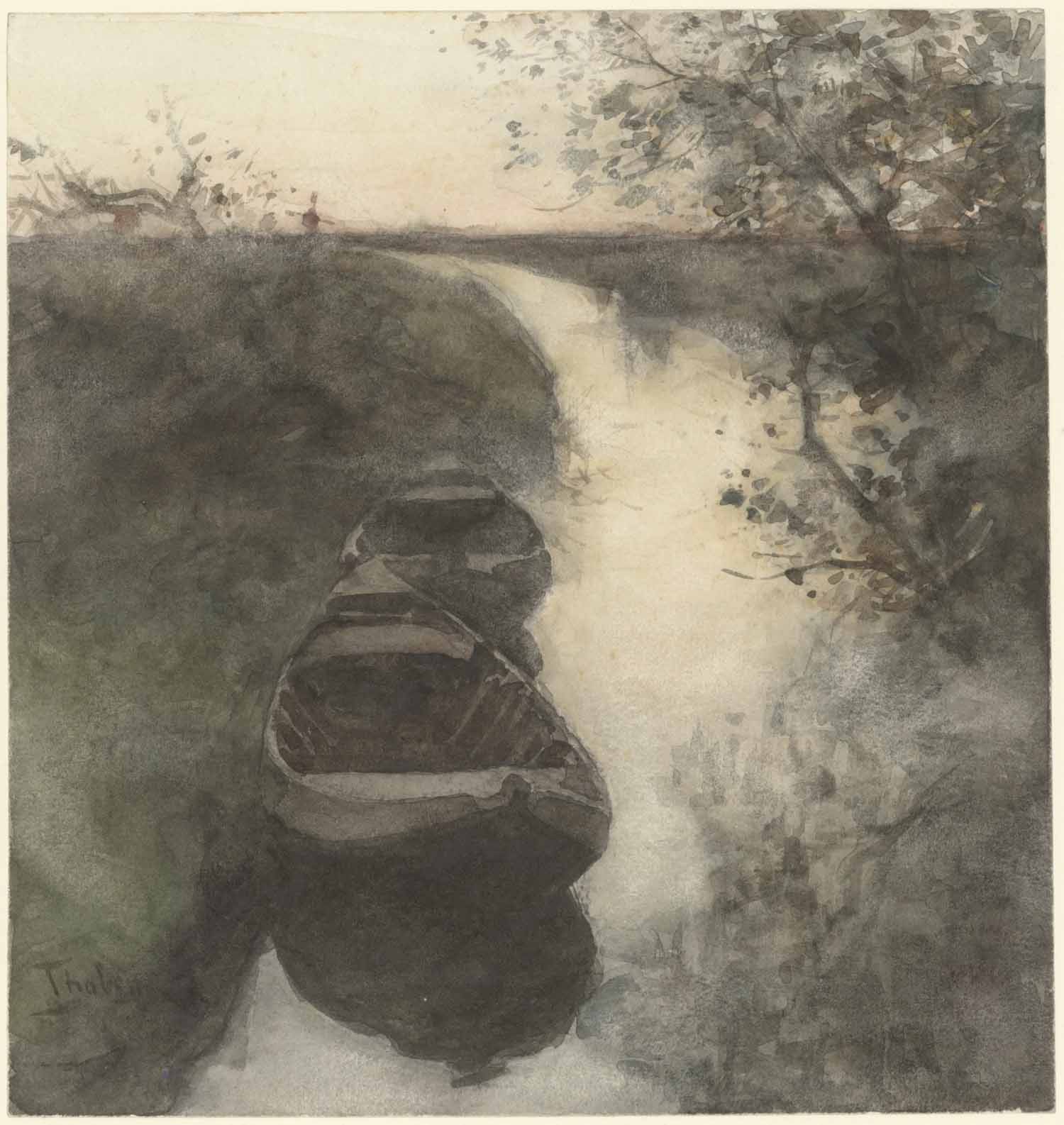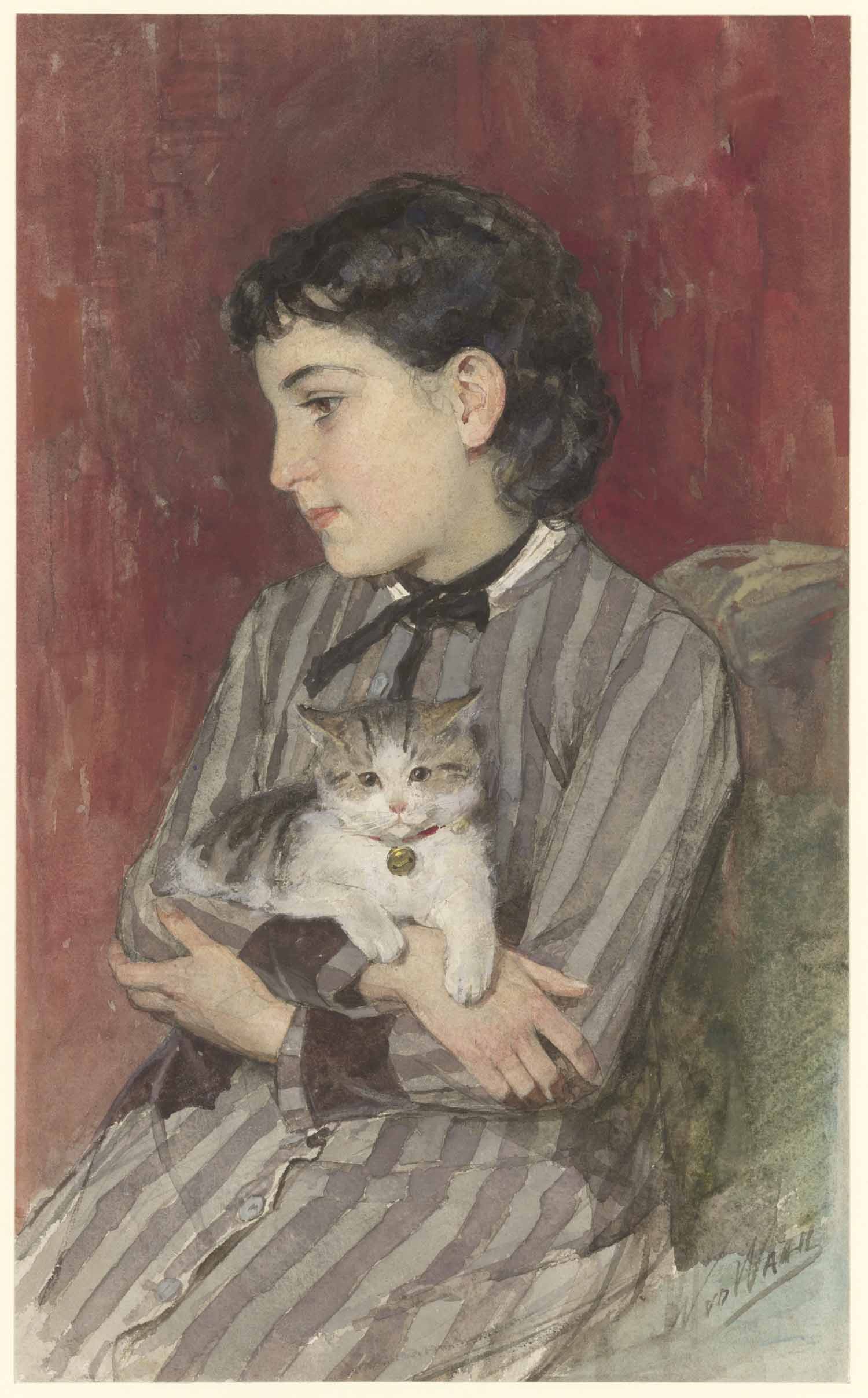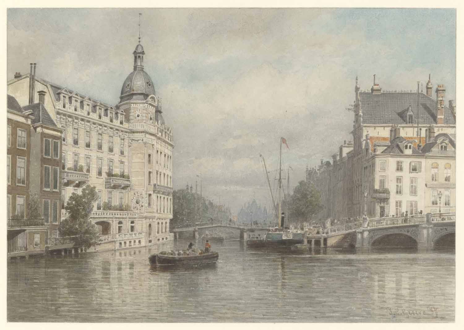 Koeien aan een water bij Gouda. Molen in landschap (...