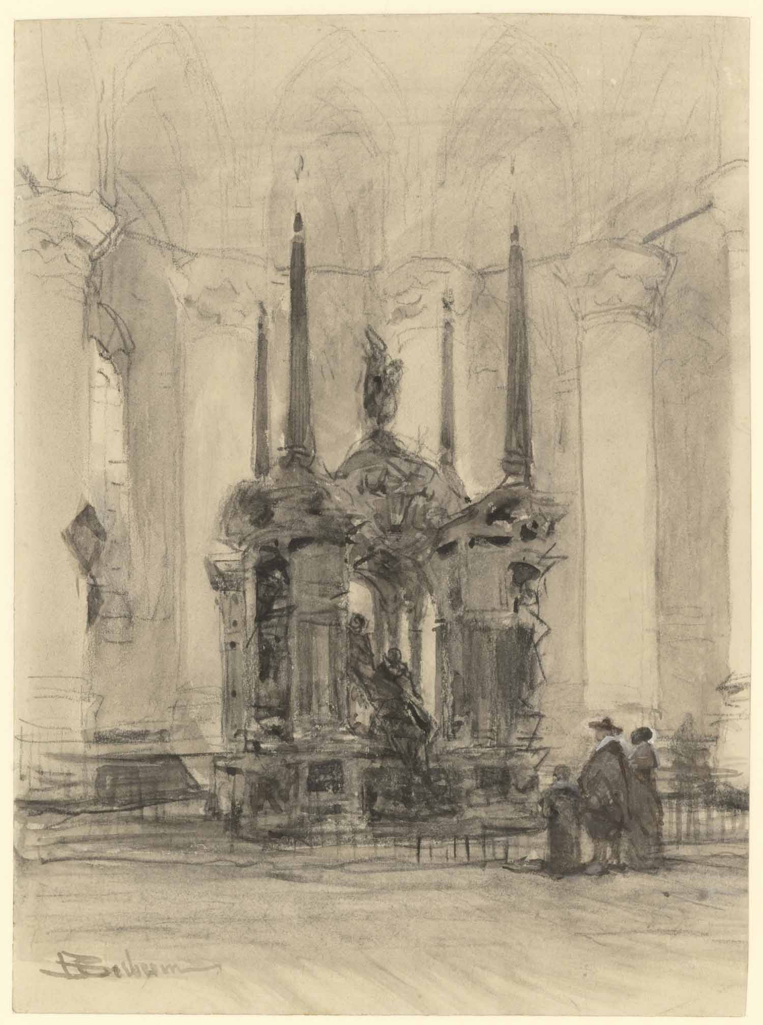 Een gezicht in de Nieuwe Kerk te Delft met het praal...