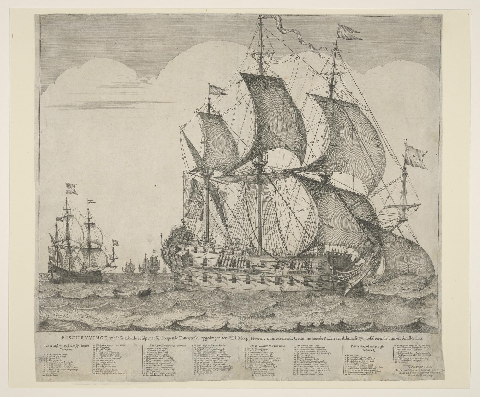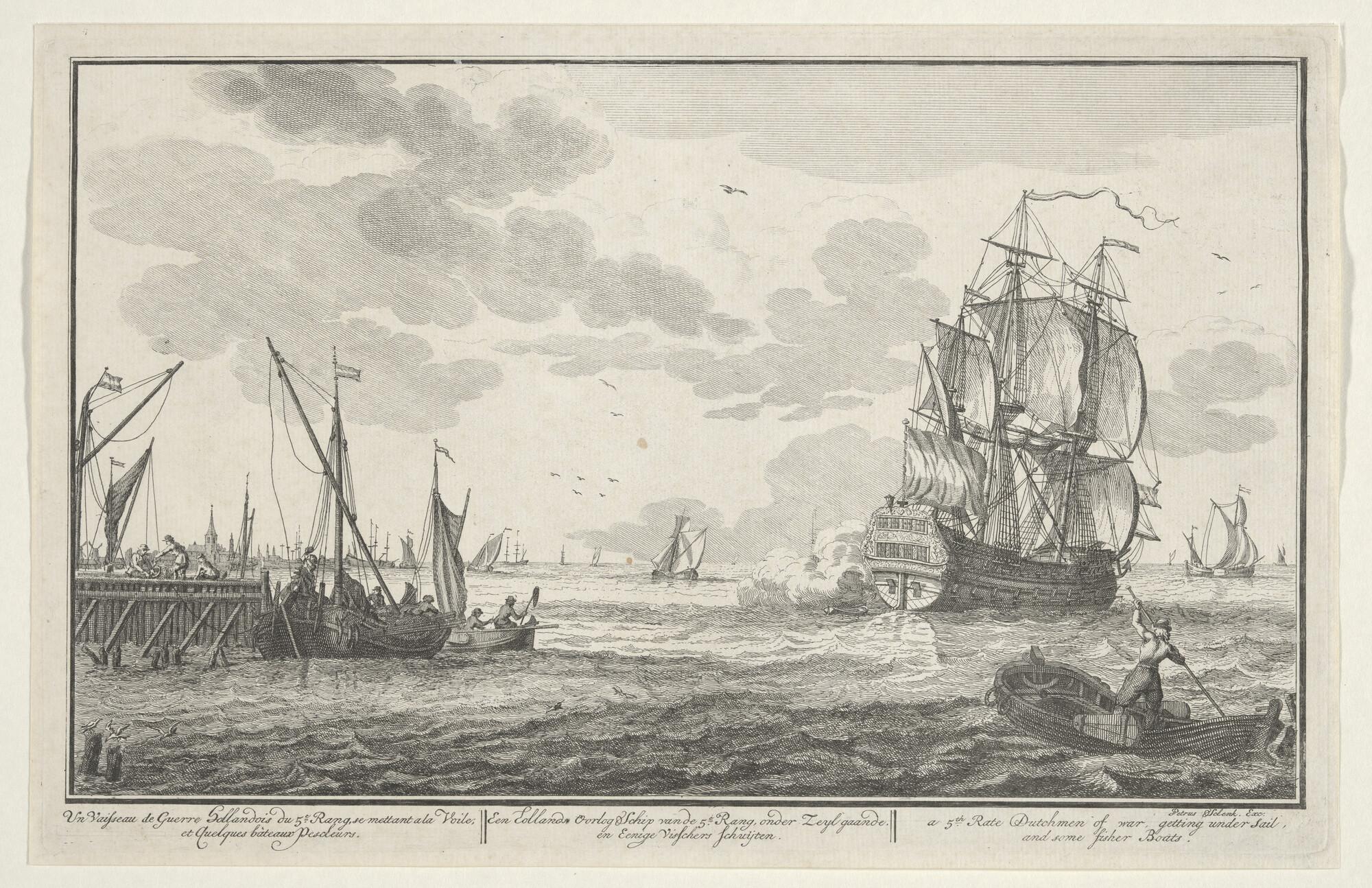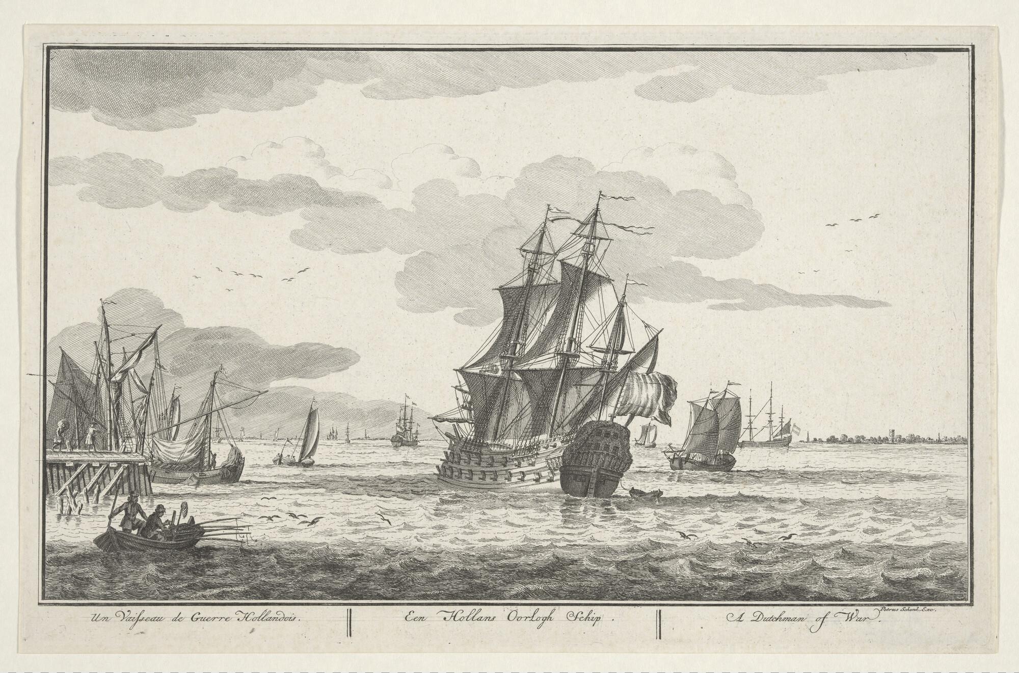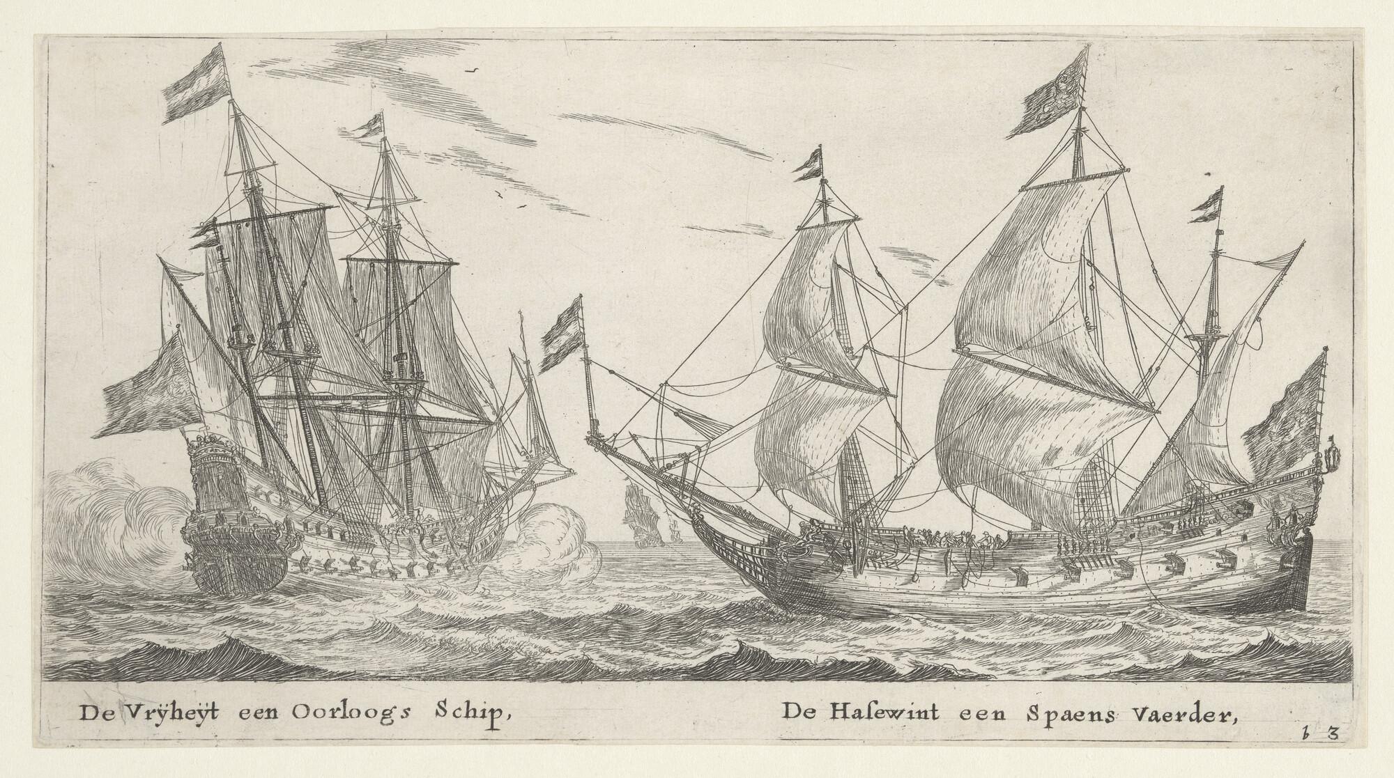 Het oorlogsschip de 'Vrijheid' en het fluitschip de ...