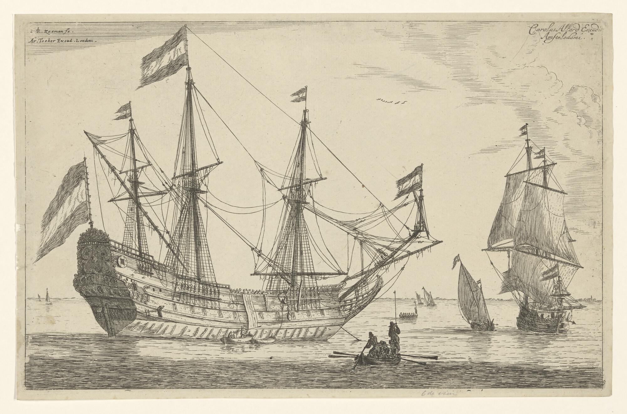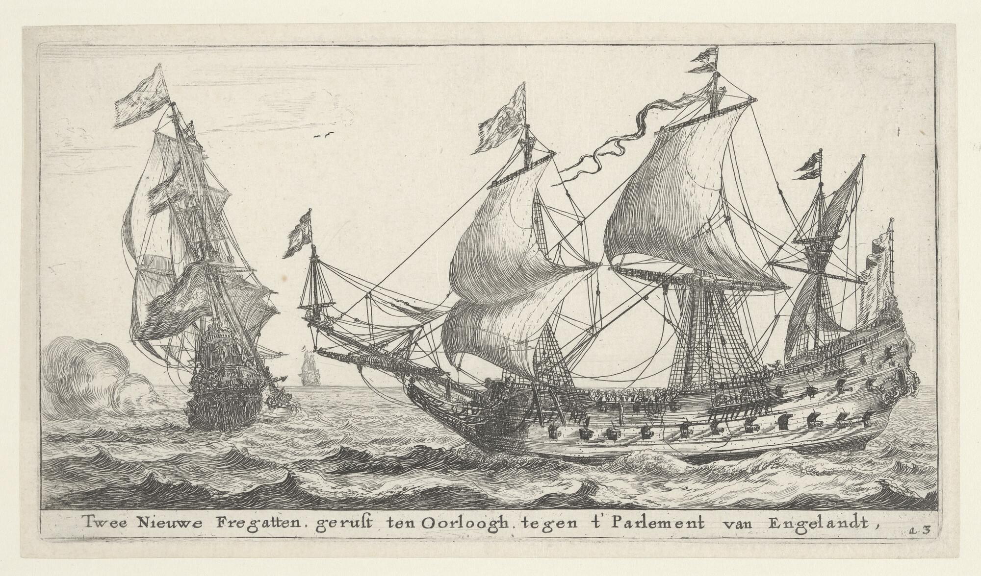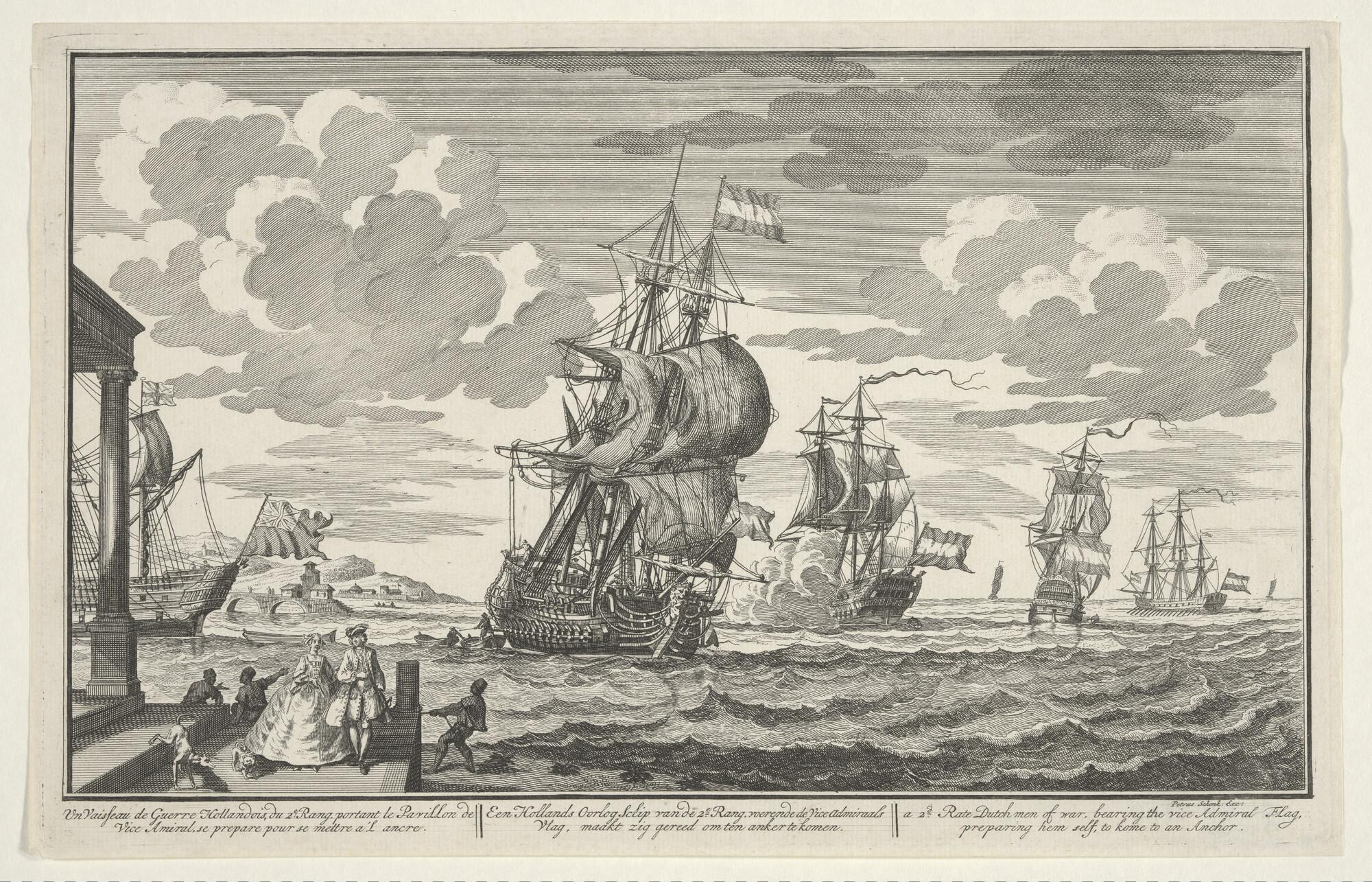 Het oorlogsschip de 'Vrijheid' en het fluitschip de ...
