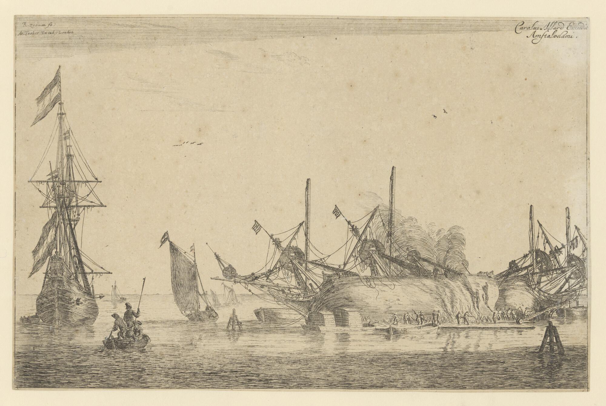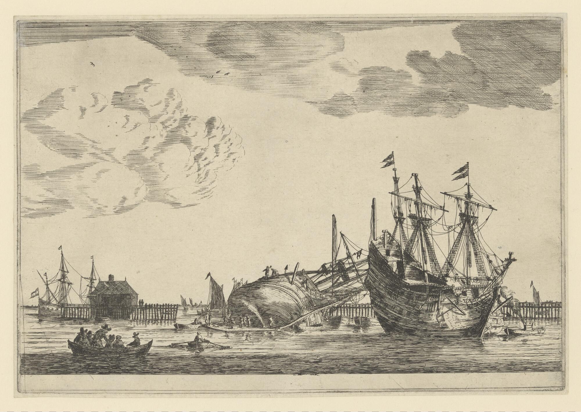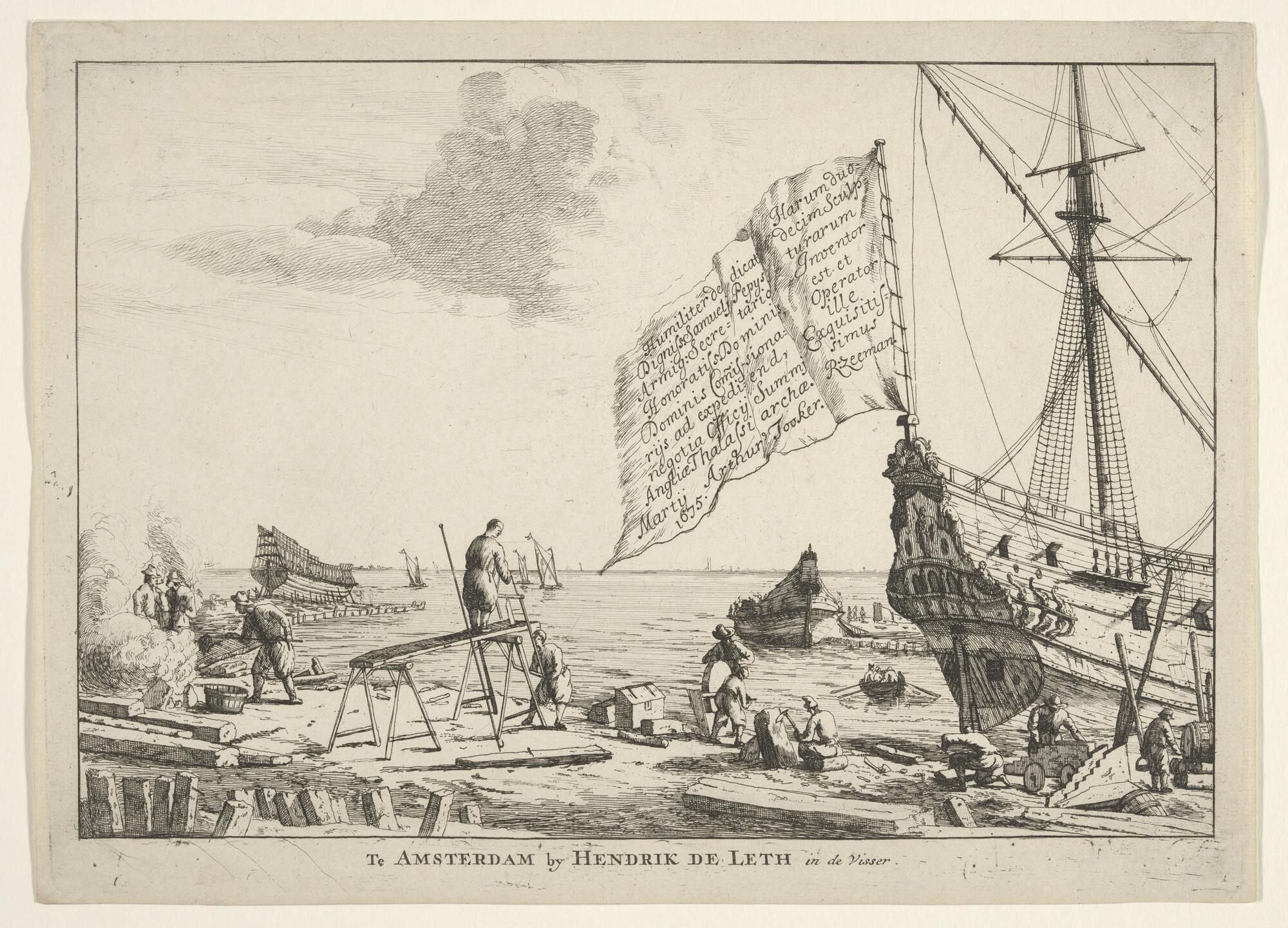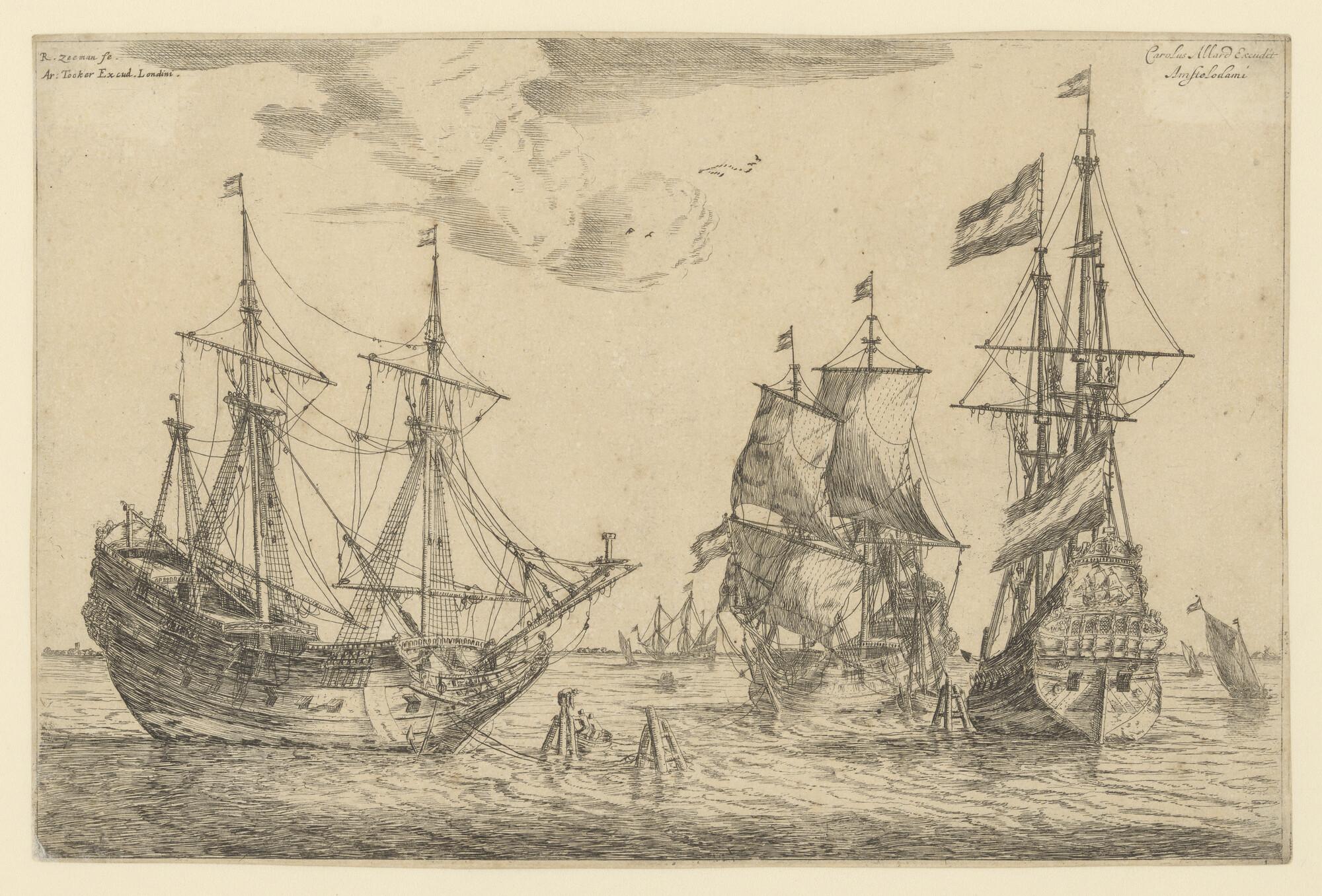 Het oorlogsschip de 'Vrijheid' en het fluitschip de ...