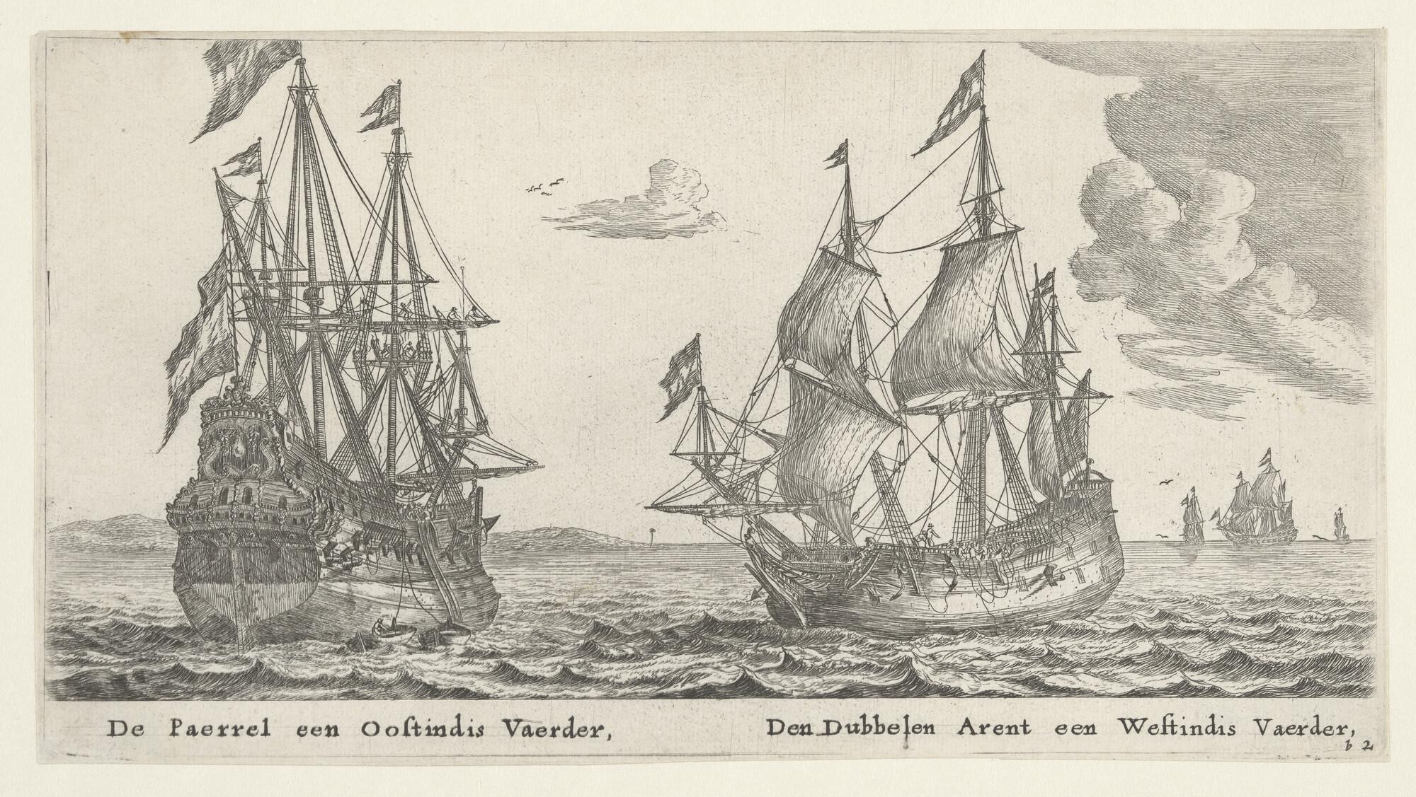 Het retourschip 'Parel' en de Westindiëvaarder 'Dubb...