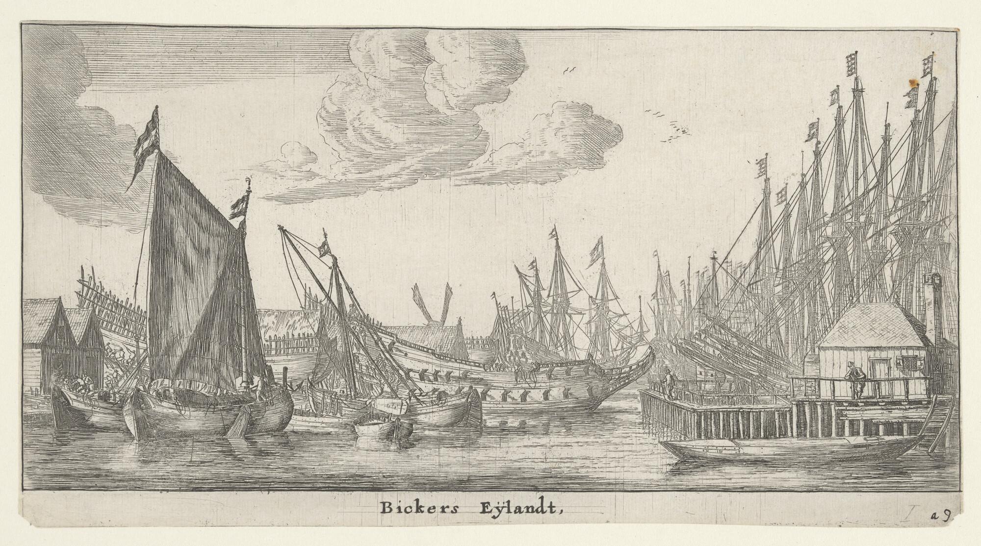 De haven van Amsterdam ter hoogte van het Bickerseiland