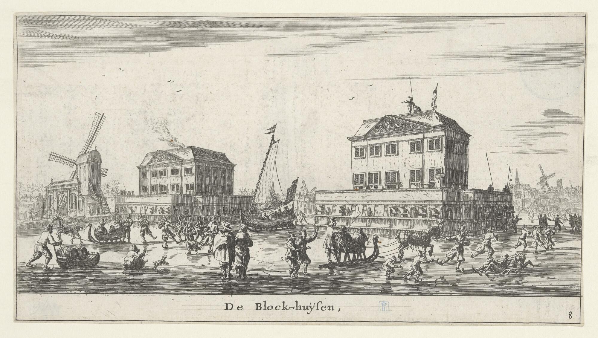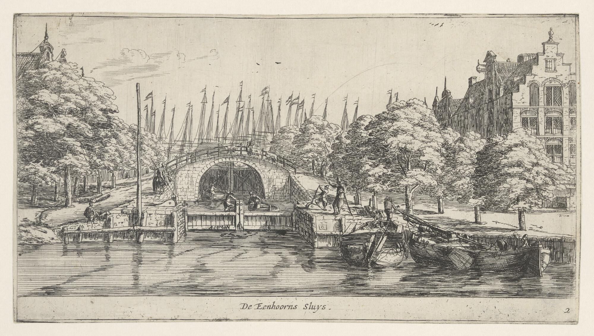 Prent uit de serie 'Zee, Land en Stroomlust: een hek...