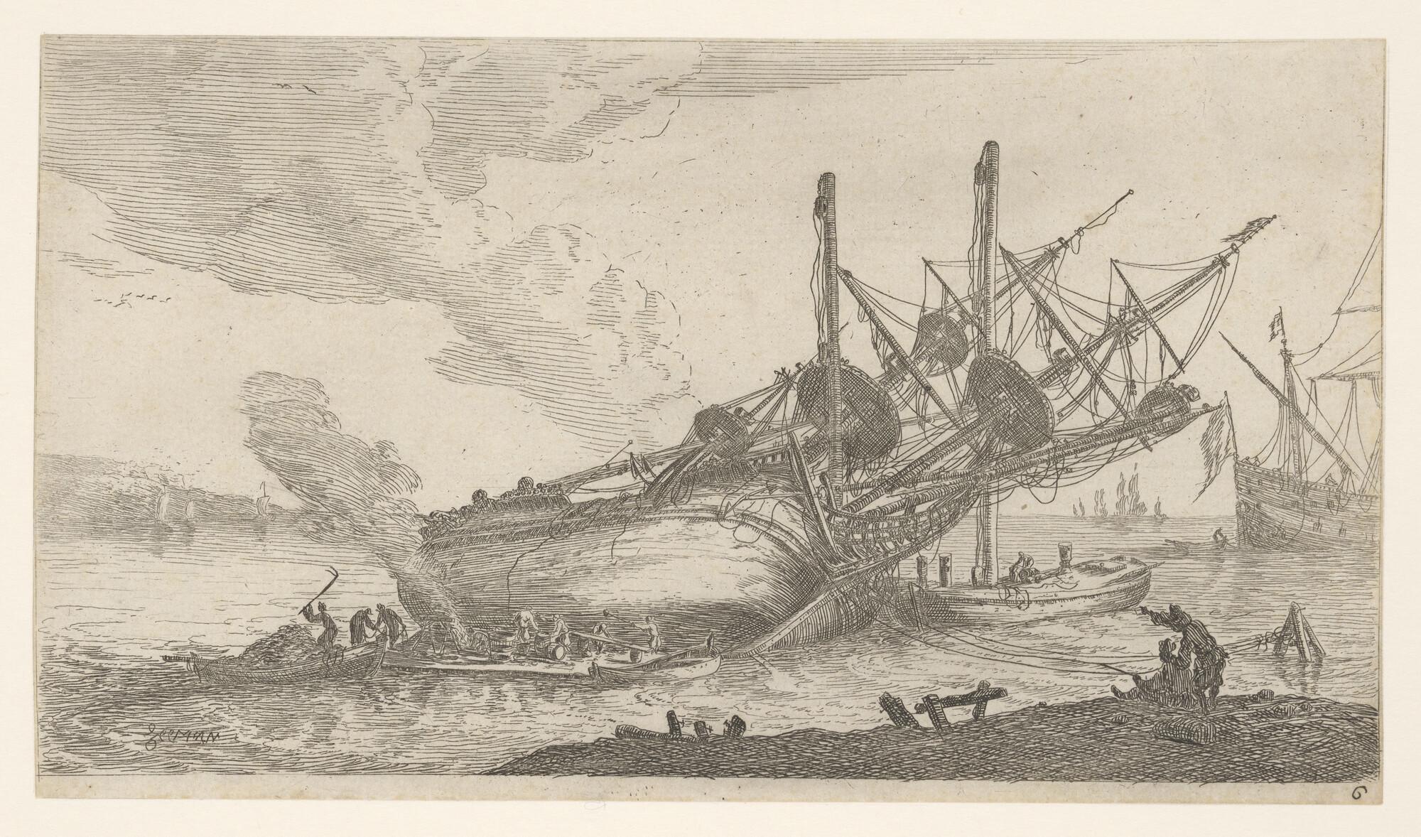 Prent uit de serie Zee, Land en Stroomlust: een oorl...