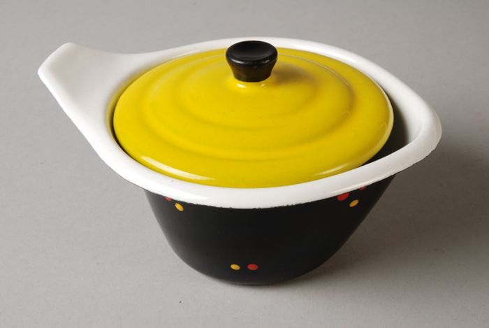 Conische zwart geëmailleerde juspan met Confetti sti...