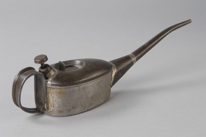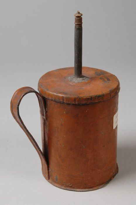 Oranje-Rode metalen carbidlamp uit verschillende del...