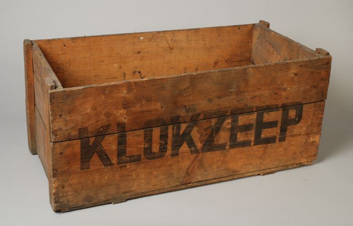 Rechthoekige zeepkist, met zwart opschrift "Klokzeep"