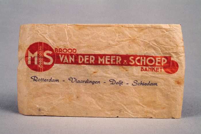 Broodzak met opdruk van "Van der Meer & Schoep" in rood