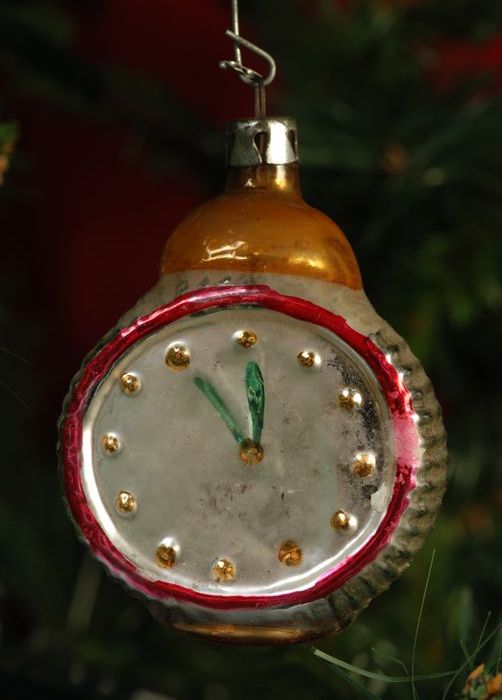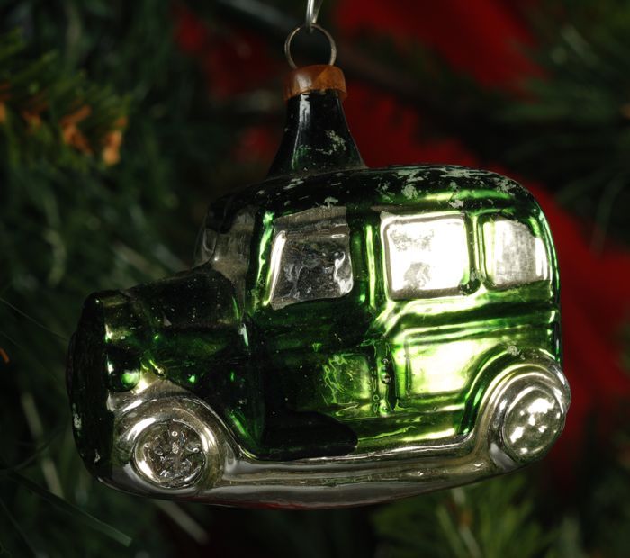 Glazen kerstbal in de vorm van een klokhuis, groen e...
