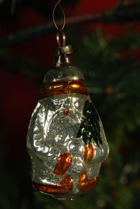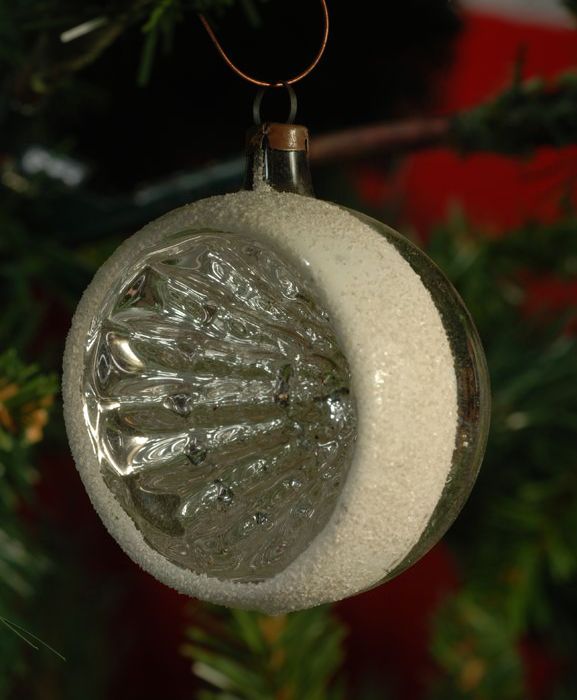 Glazen kerstbal, kogelrond, diepe instulping aan één...
