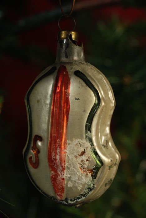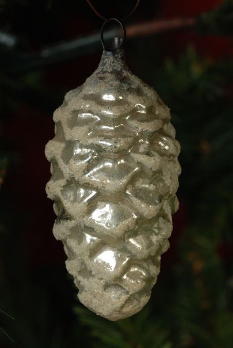 Glazen kerstbal in de vorm van een sparrenkegel of d...